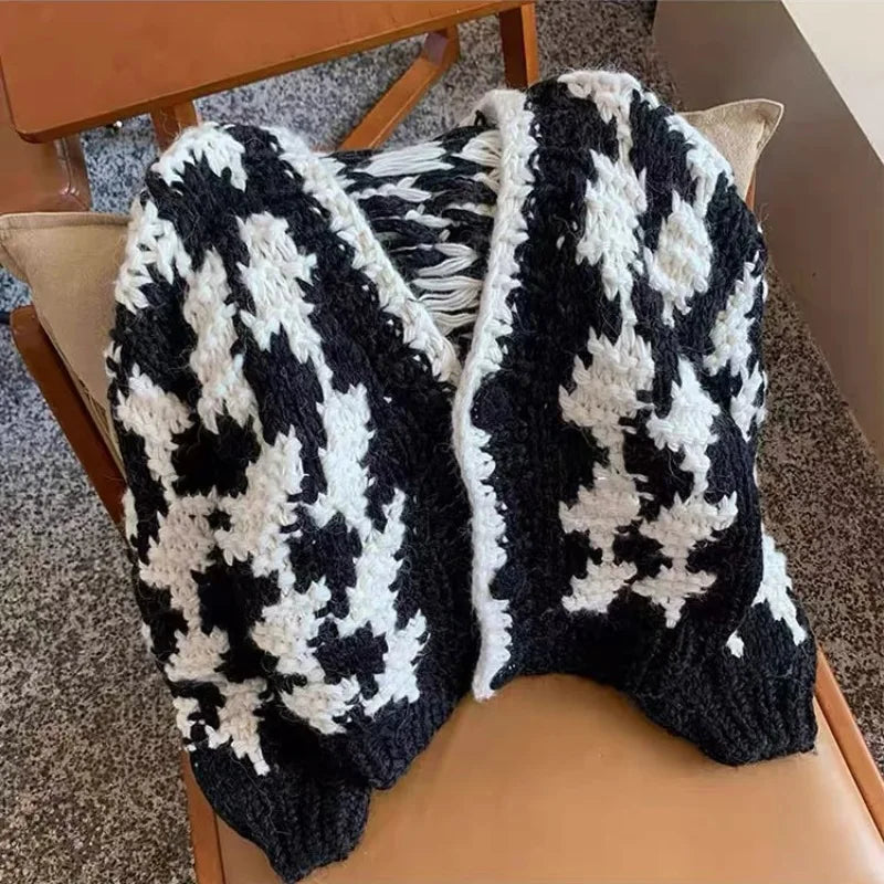 Why You'll Love It: This cardigan effortlessly combines comfort with style. featuring a loose. relaxed fit that drapes beautifully on any figure. The versatile black and white color-block design makes it easy to mix and match with your favorite pieces. making it a go-to staple for casual wear.