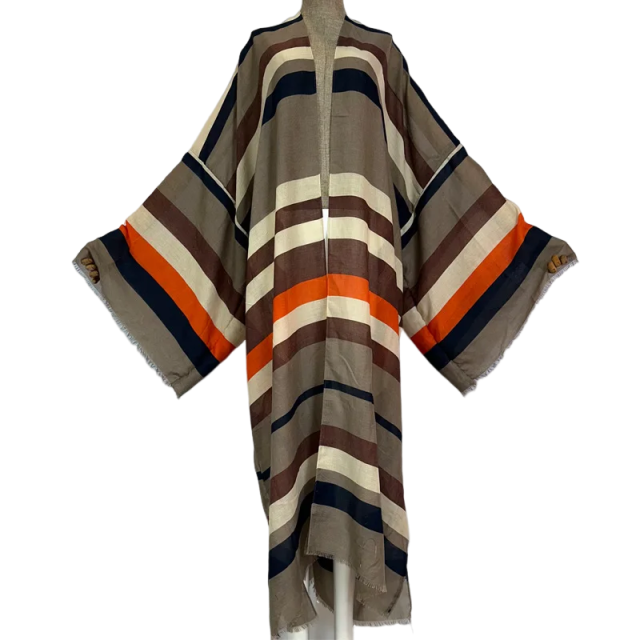This stylish Warm Striped Maxi Kimono Cardigan is designed for both fashion and warmth. Made with a cozy material blend. it will keep you comfortable and on-trend all day long. The unique striped pattern adds a touch of elegance. making it the perfect addition to any outfit.
