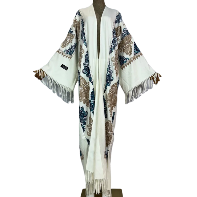 Stay warm and stylish this season with our Tassel Kimono Cardigan. Made with cozy materials. this cardigan will keep you comfortable while making a fashion statement. The tassel detailing adds a touch of bohemian flair to any outfit. A must-have for any fashion-savvy individual.