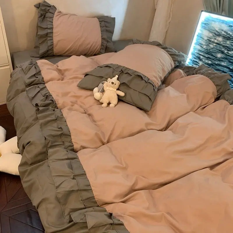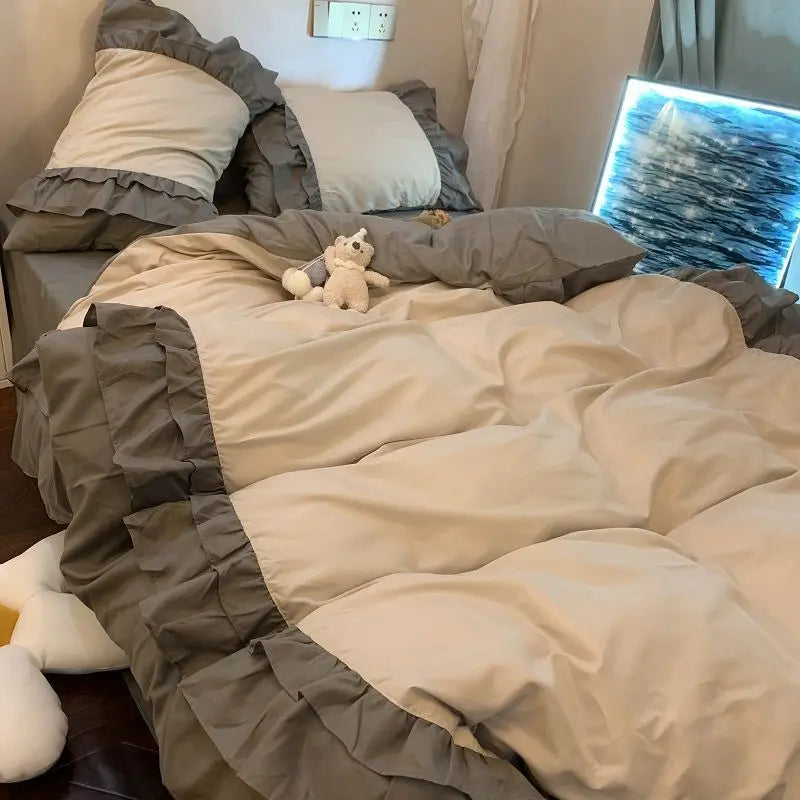 Princess Style Bedding Set No Filling Korean Romantic Ruffles Blue Purple Single Double Queen Size Duvet Cover Sheet Pillowcase