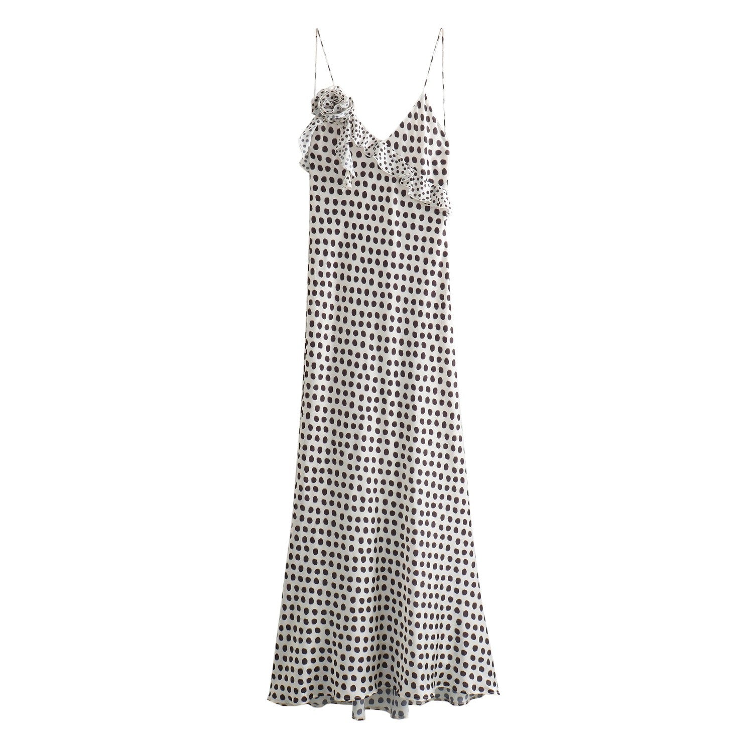 Expertly crafted with printed 3D flower silk satin. this suspender dress exudes elegance and luxury. The textured fabric adds subtle sophistication. making it perfect for any occasion.