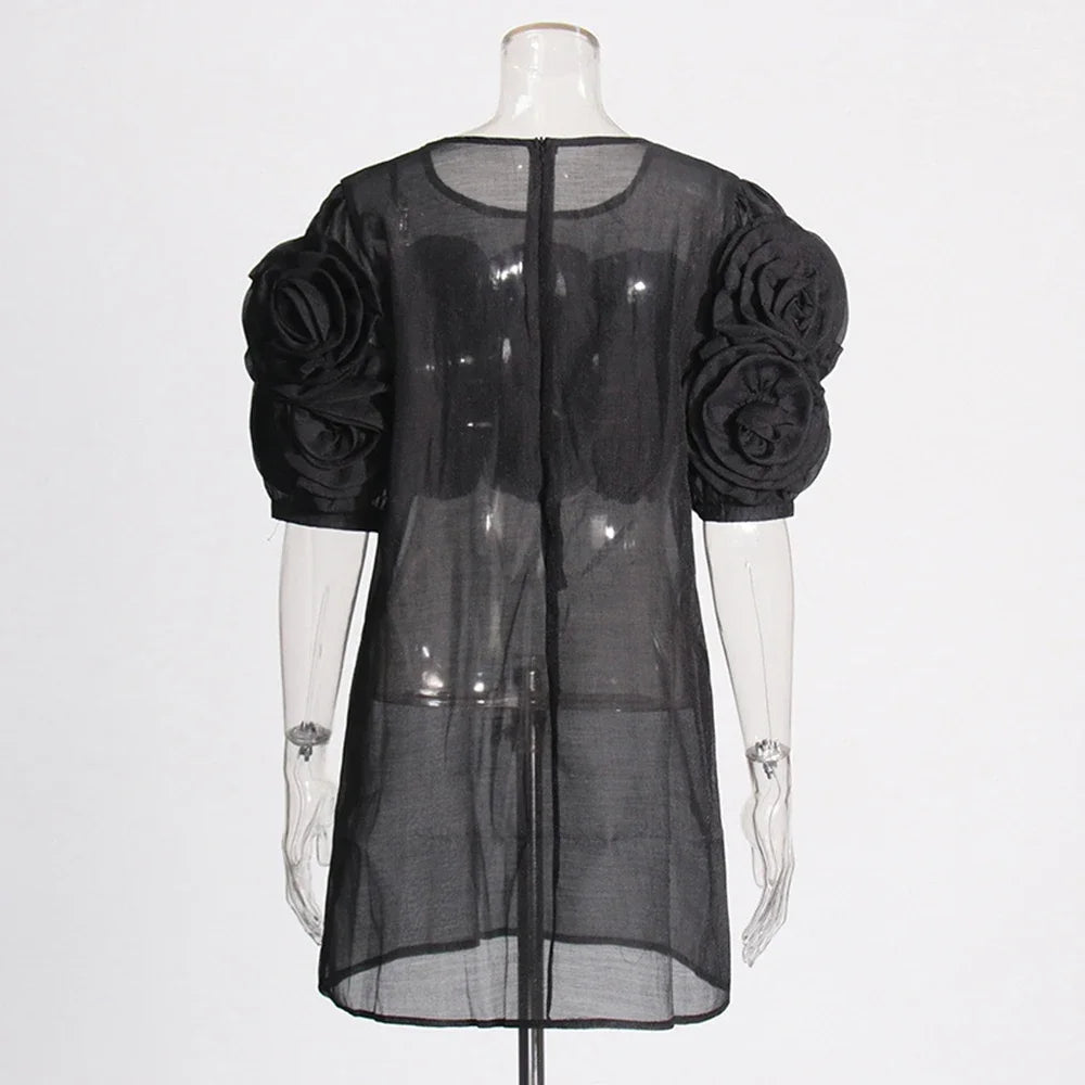 This Retro 3D Rose Fluffy Sleeve Mini Dress brings a touch of vintage charm to your wardrobe. The slim fit and fluffy sleeves create a flattering and feminine silhouette. while the 3D rose detailing adds a unique and eye-catching element.