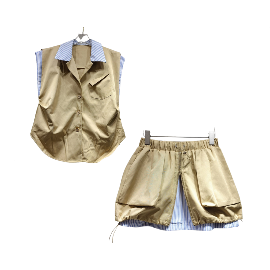 This stylish duo features a unique patchwork design. giving you a one-of-a-kind outfit. Enjoy the convenience of a two-piece set without sacrificing fashion.