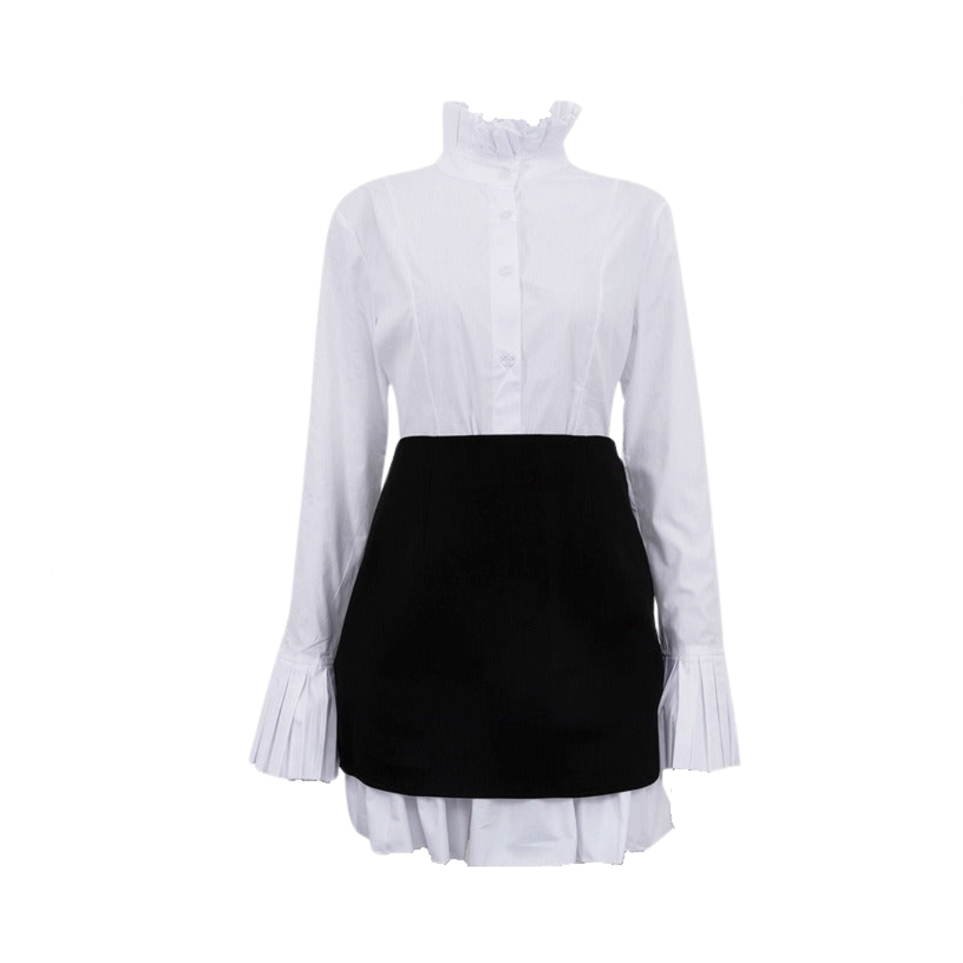 This Retro Flared Sleeves Pleated Stand Collar Shirt + Skirt Set brings vintage charm to any wardrobe. The flared sleeves. pleated details. and stand collar create a timeless style. The flared design allows for a comfortable and flattering fit.