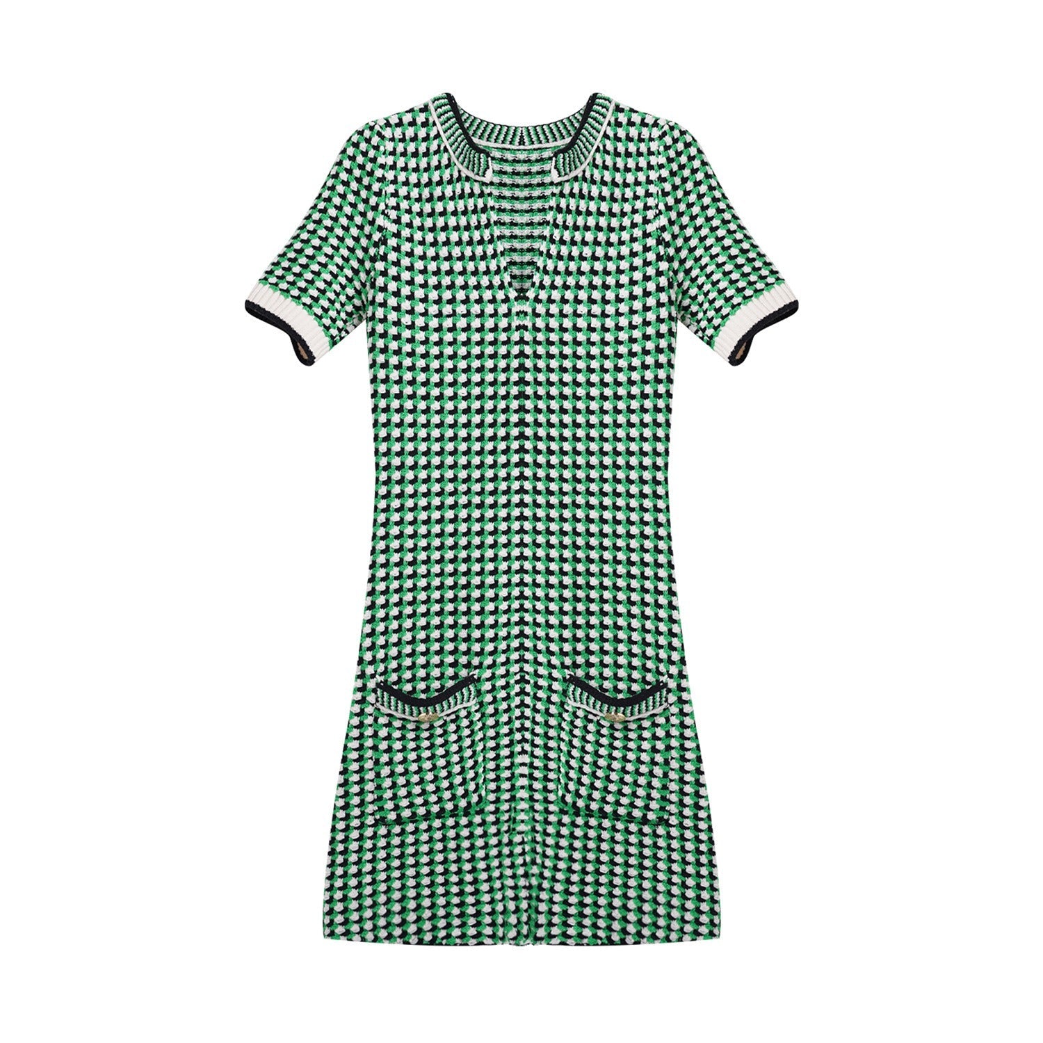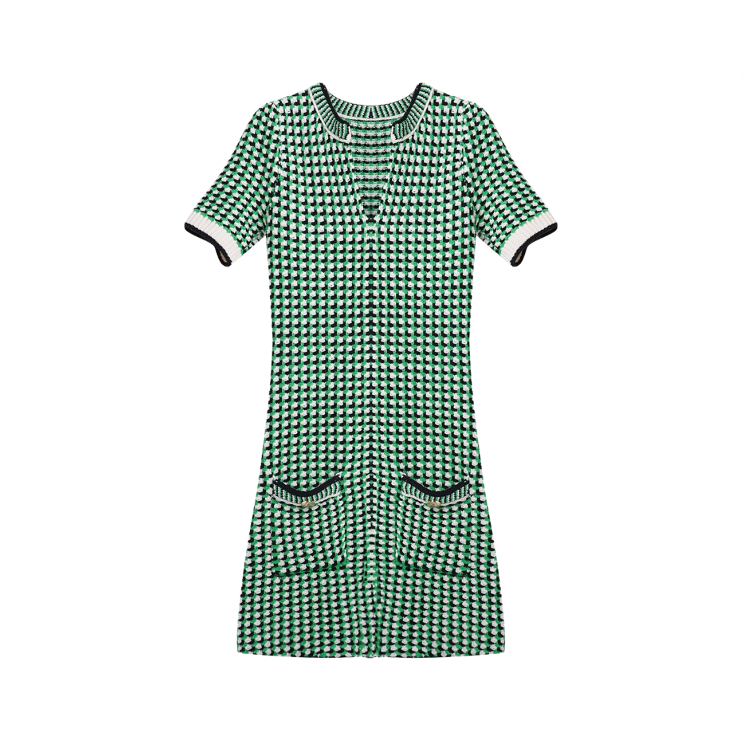 Expertly crafted with slim fit design. this Retro Green Checkered V-Neck Dress is a perfect blend of retro and modern style. The checkered pattern adds a touch of vintage charm. while the v-neckline flatters the figure.