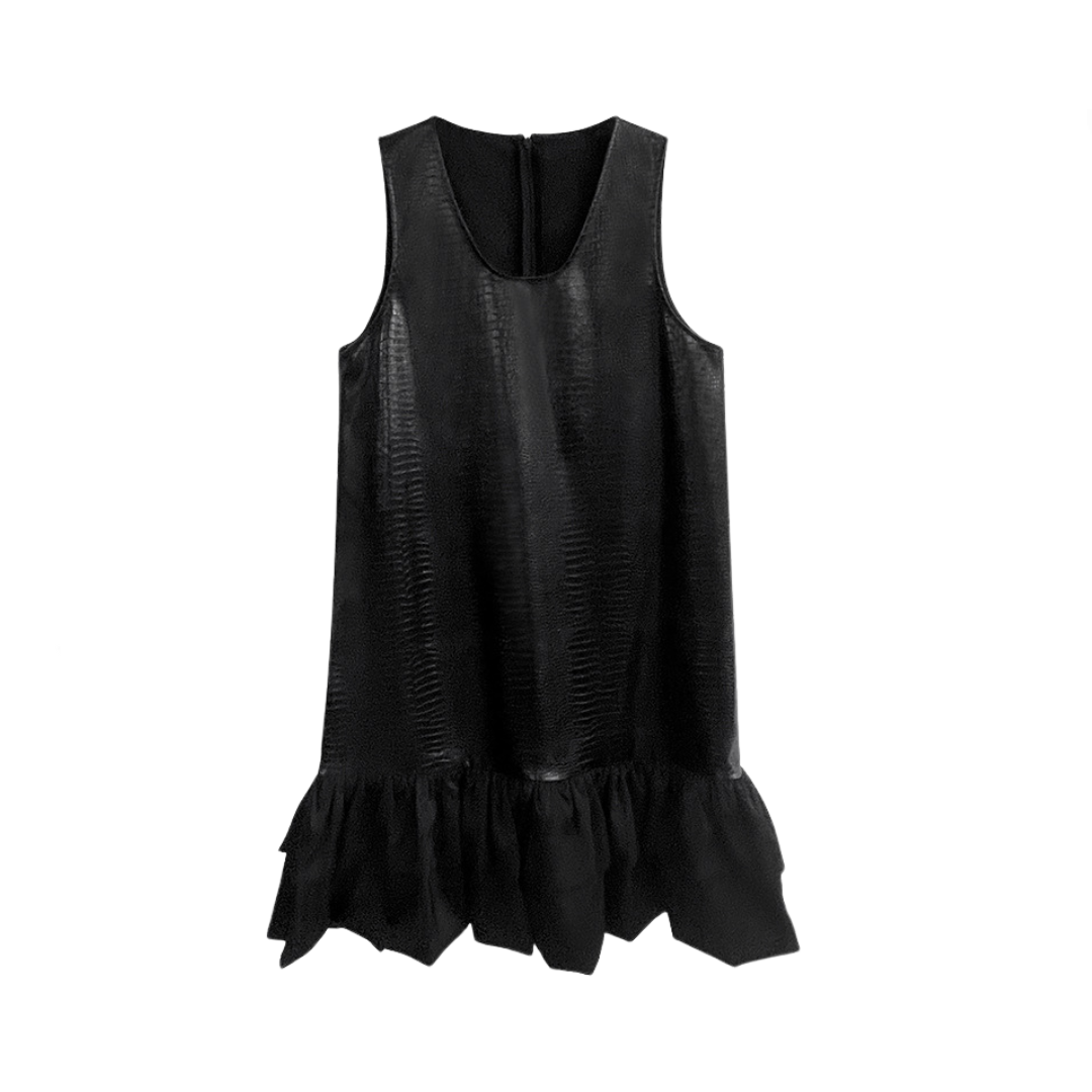 This Retro Sleeveless Loose PU Dress showcases a vintage style with a modern twist. Its loose fit allows for comfortable wear while the PU material adds a touch of sophistication.