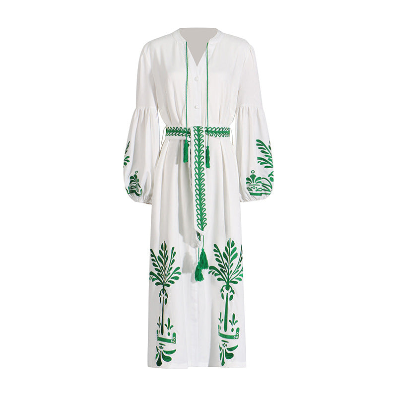 This Retro Waist Slimming Lantern Sleeve Lace Up Dress is designed to flatter your figure and add a touch of vintage charm to your wardrobe. The waist-cinching design and lace-up details provide a slimming effect. while the lantern sleeves add a unique and timeless touch.