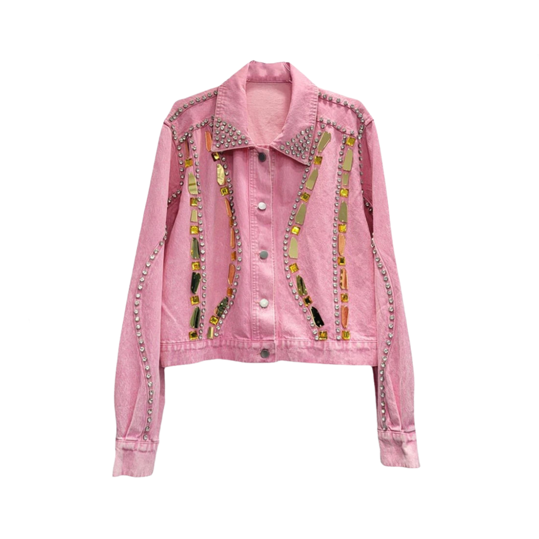 With its intricate rhinestone and sequin details. this jacket adds a touch of elegance to any outfit. Made from durable denim. it offers both style and quality.