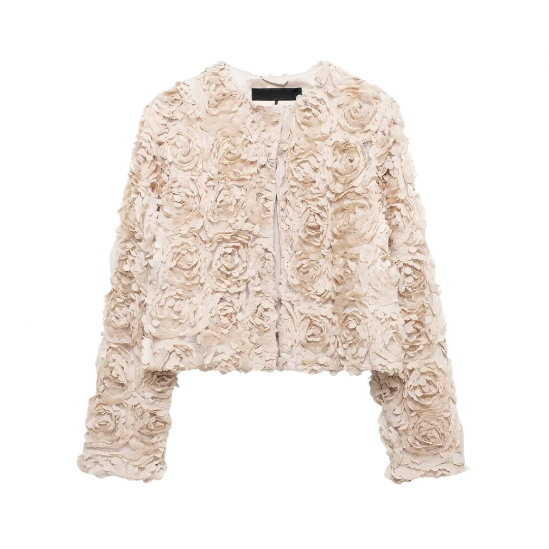 Expertly crafted with a round neck and long sleeves. this jacket features 3D flower details for a touch of elegance. Designed for comfort and style. it's perfect for any occasion.