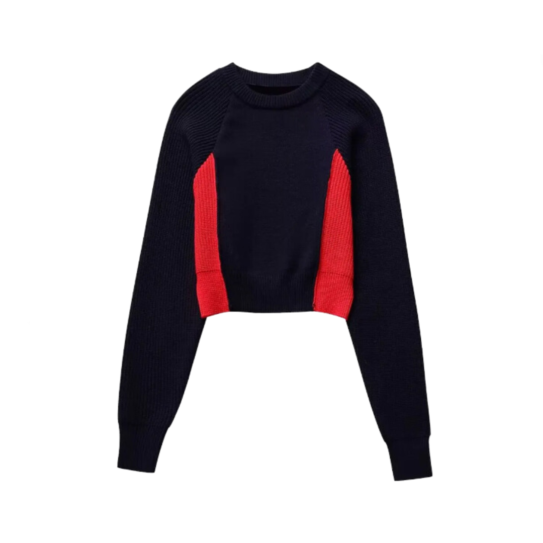 Expertly crafted with a modern color block design. this Round Neck Long Sleeved Knitted Sweater offers both style and comfort. Made with soft. knitted fabric. it features a classic round neckline and long sleeves. providing a flattering fit for any occasion.