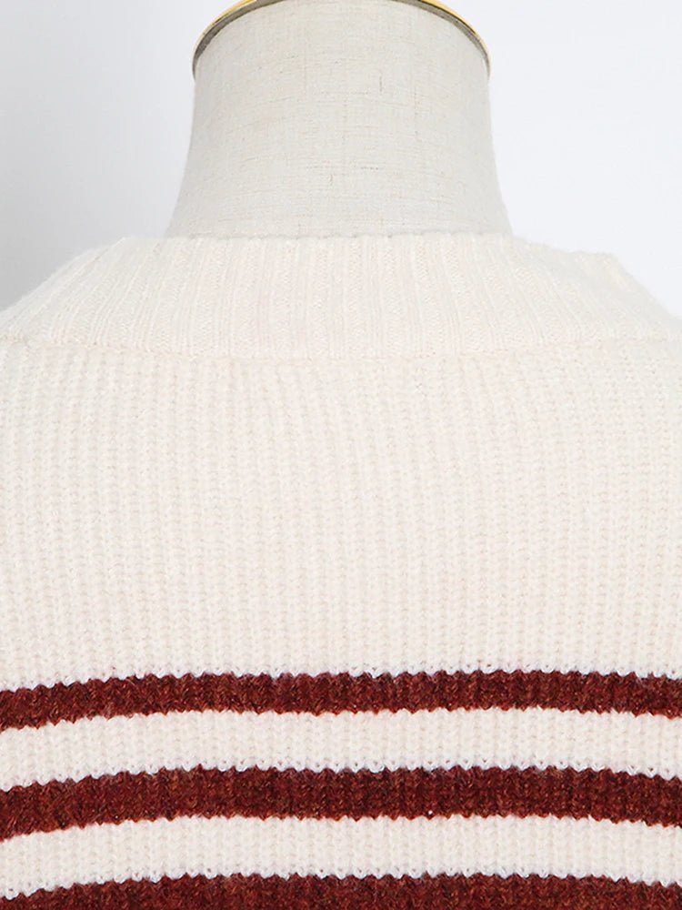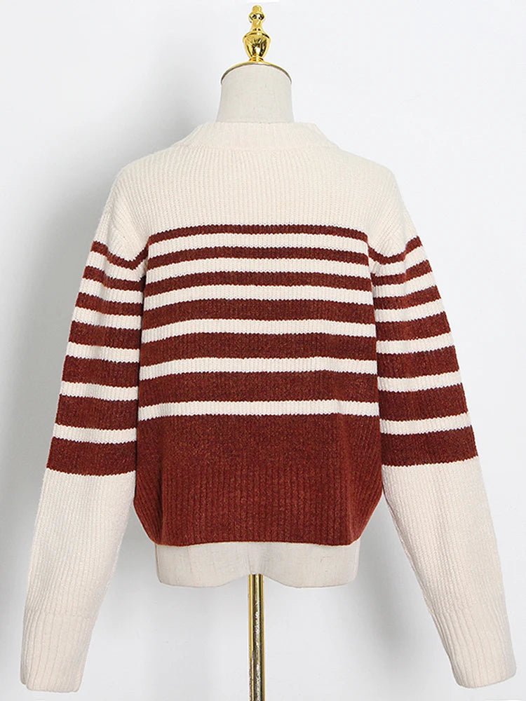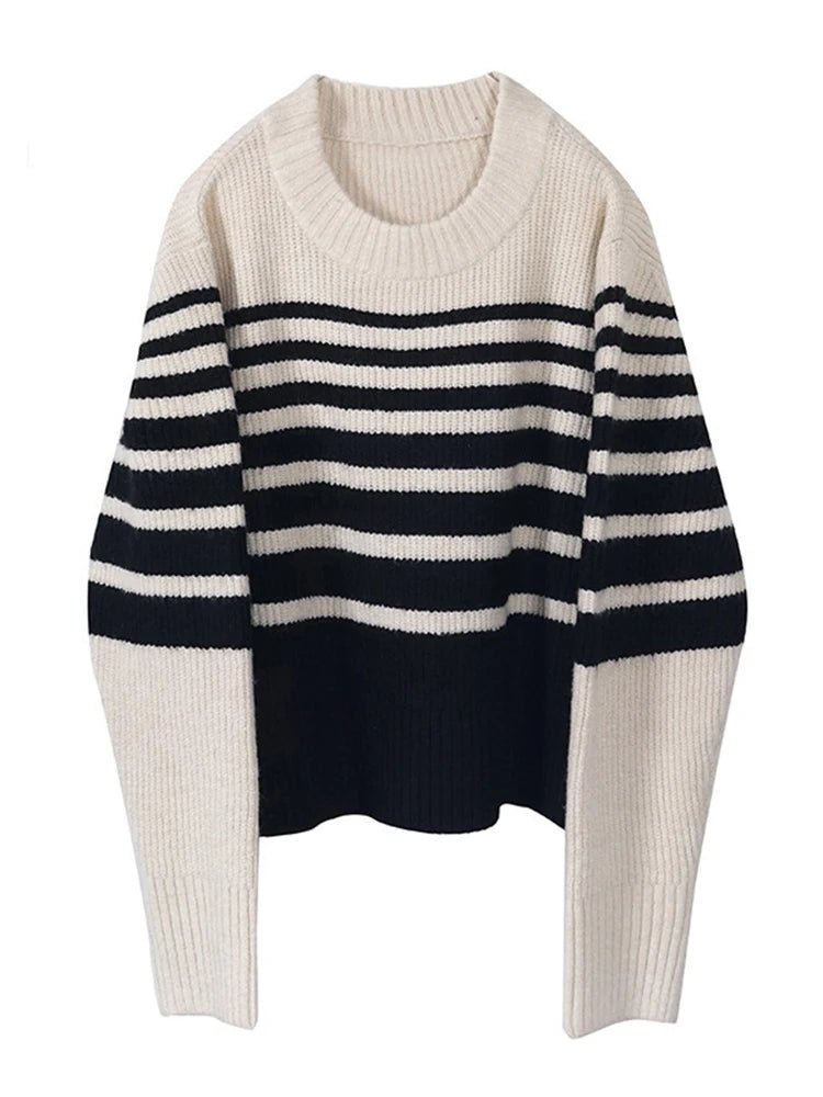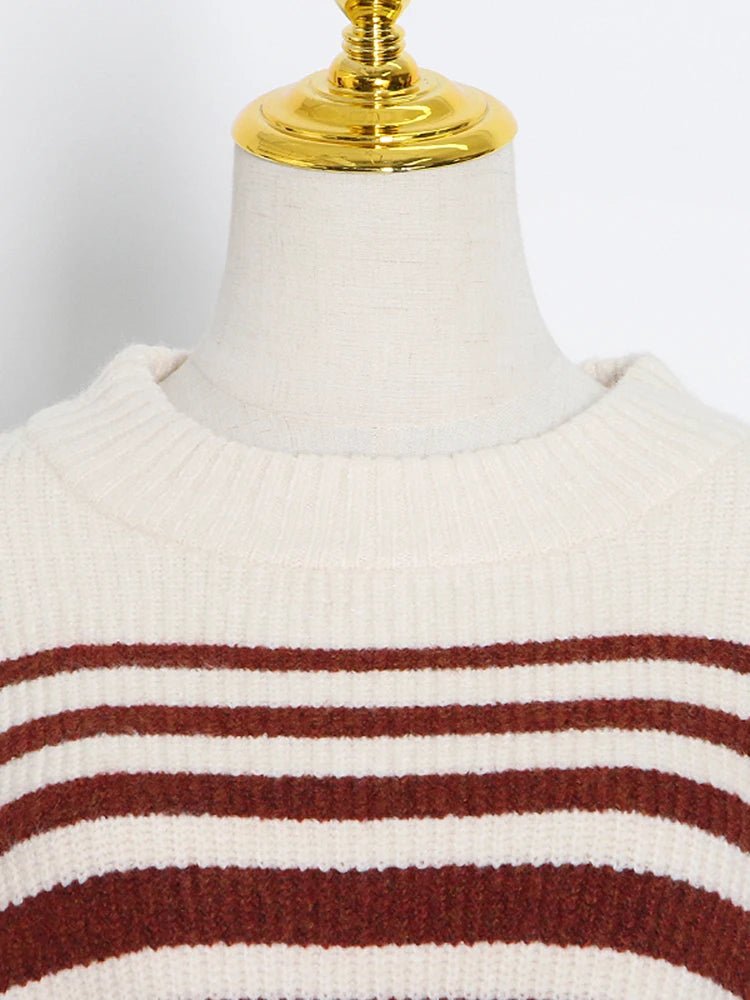 Round Neck Striped Knit Sweater