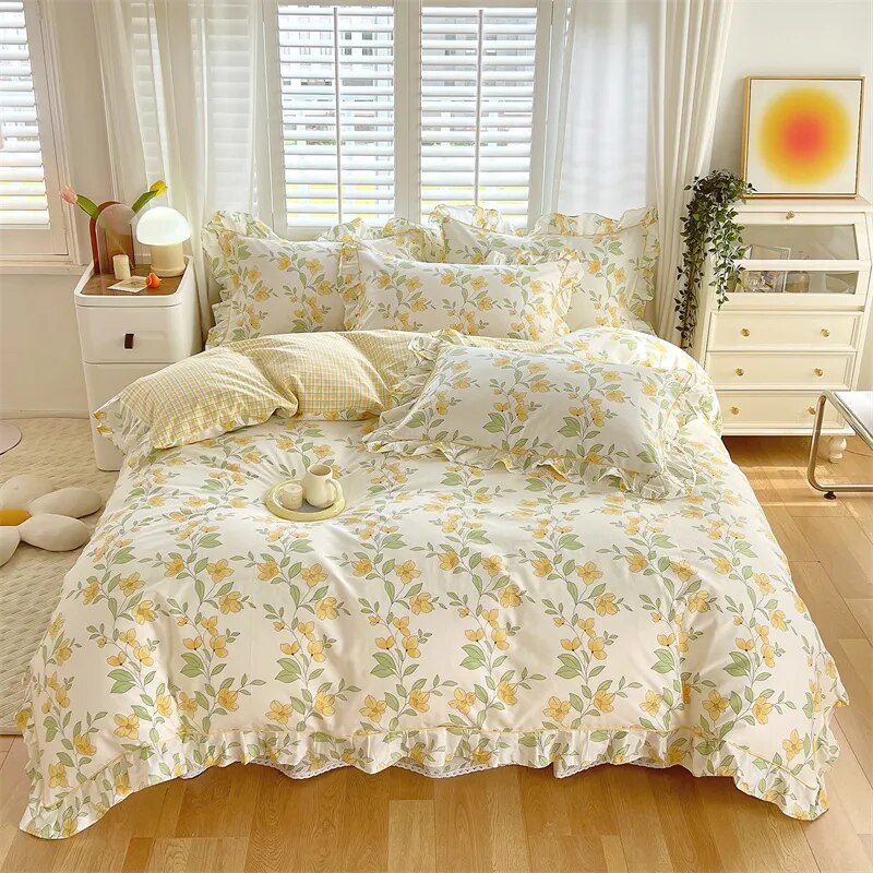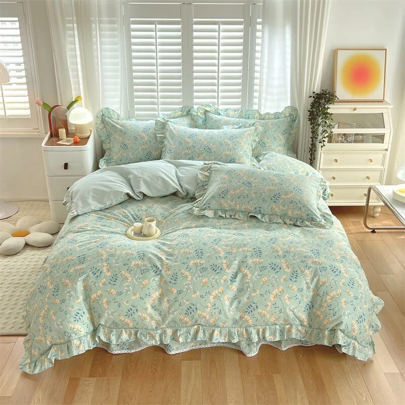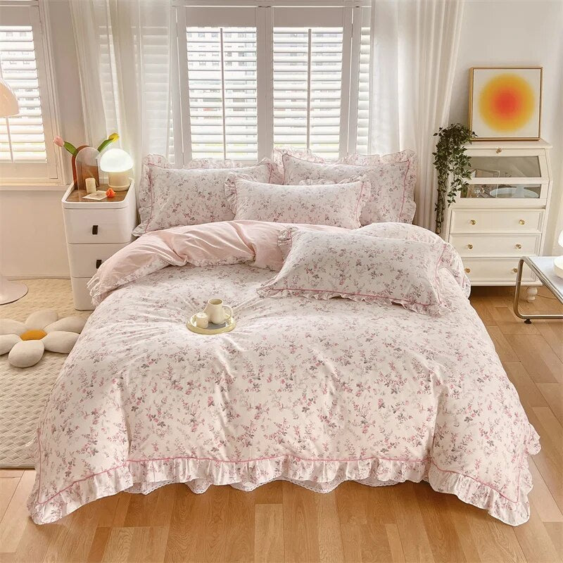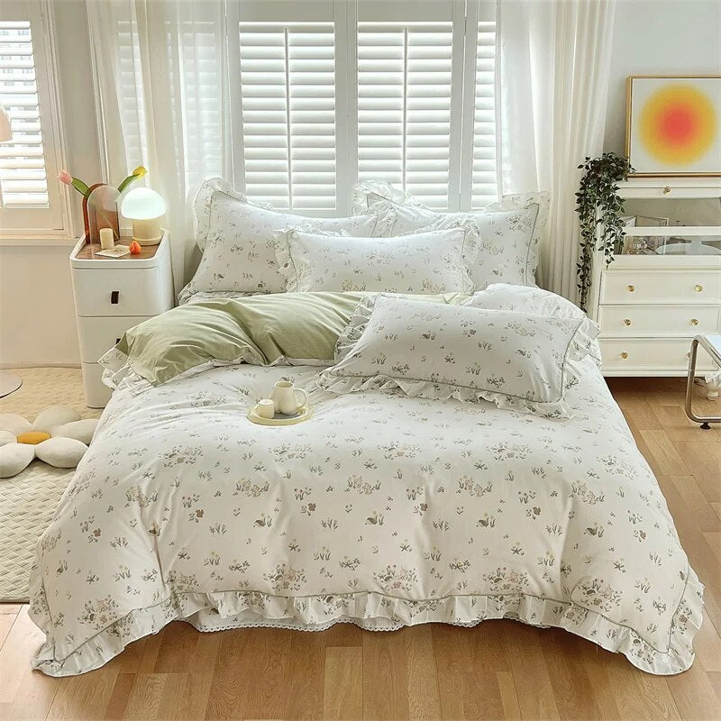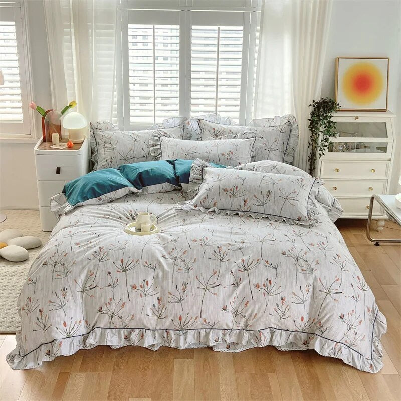 â—?A very pretty ruffle with an extremely rustic floral design instantly brings the whole bedroom to life.