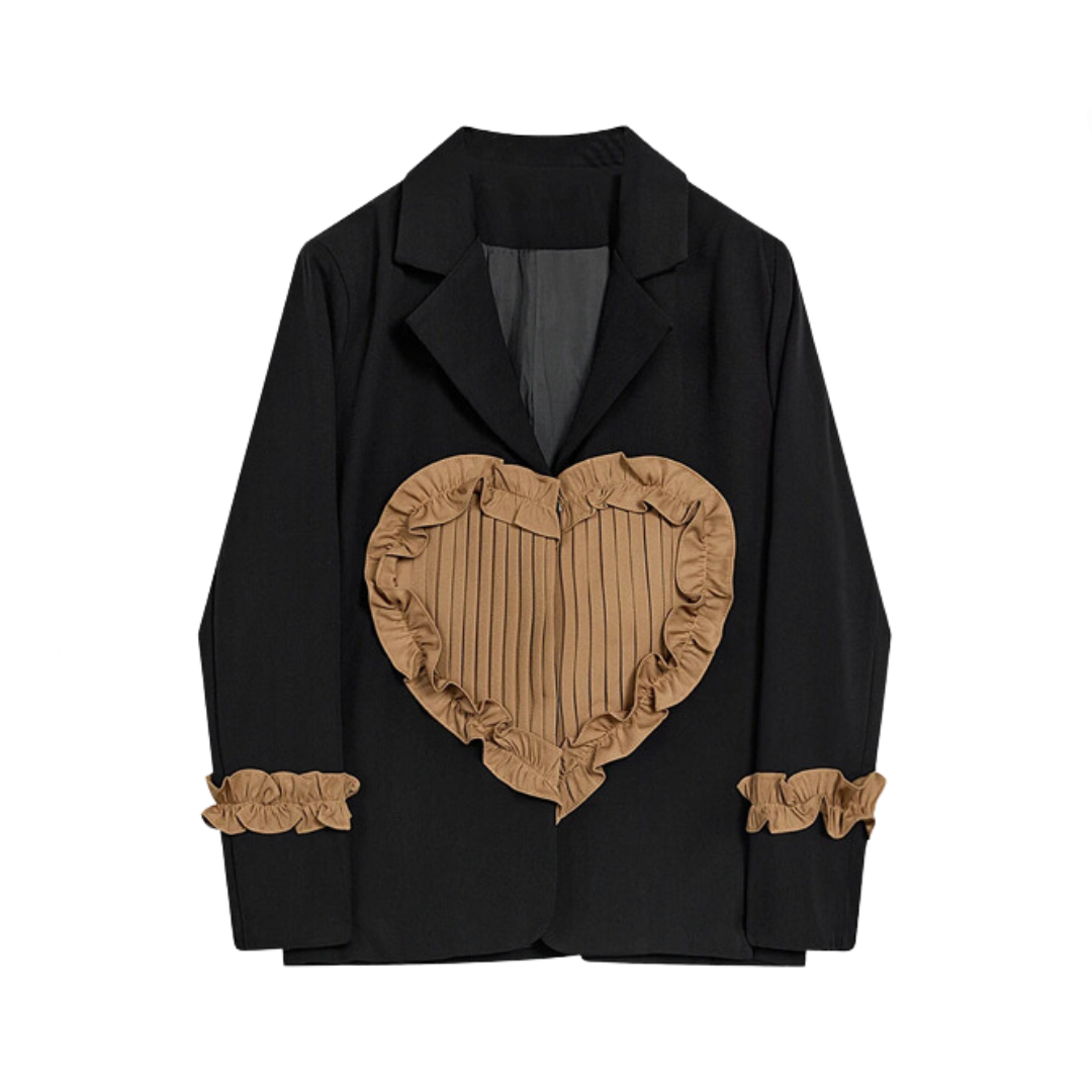 Experience the perfect blend of style and comfort with our Ruffles 3D Love Loose Casual Blazer. Its unique ruffled design adds a touch of elegance while its loose fit provides maximum comfort.