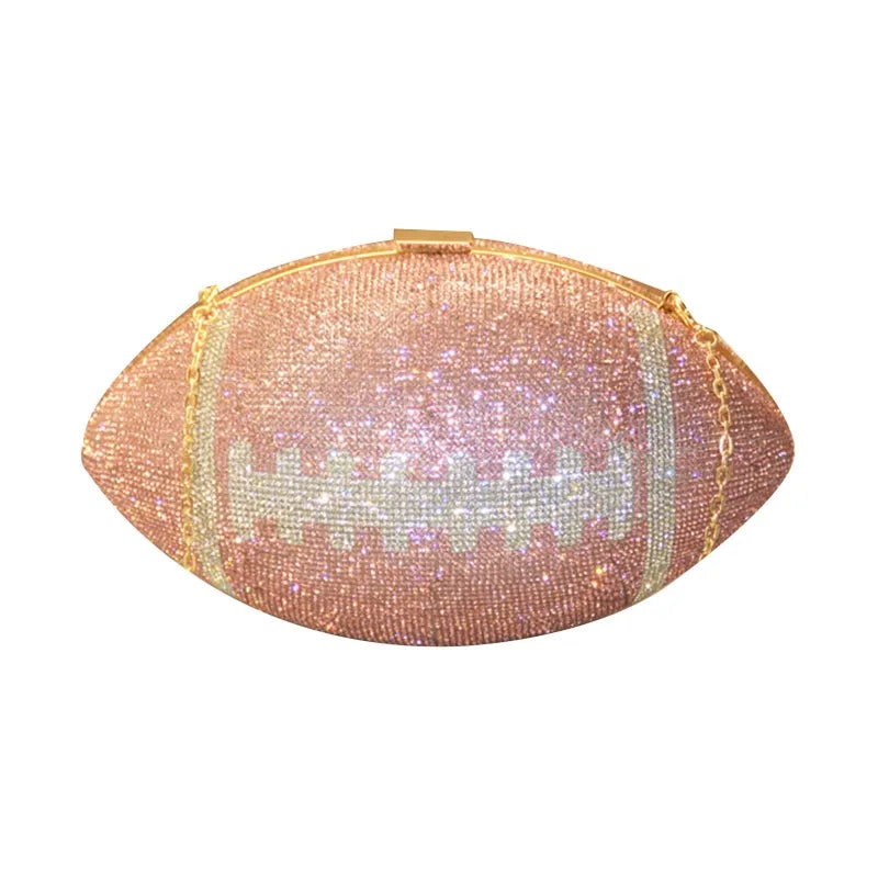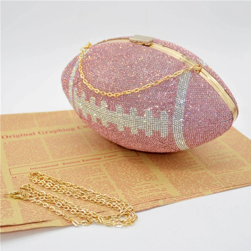 The unique shape and sparkling rhinestone details make it a statement piece for any occasion. Its spacious interior and durable design make it the perfect choice for carrying your essentials in style.