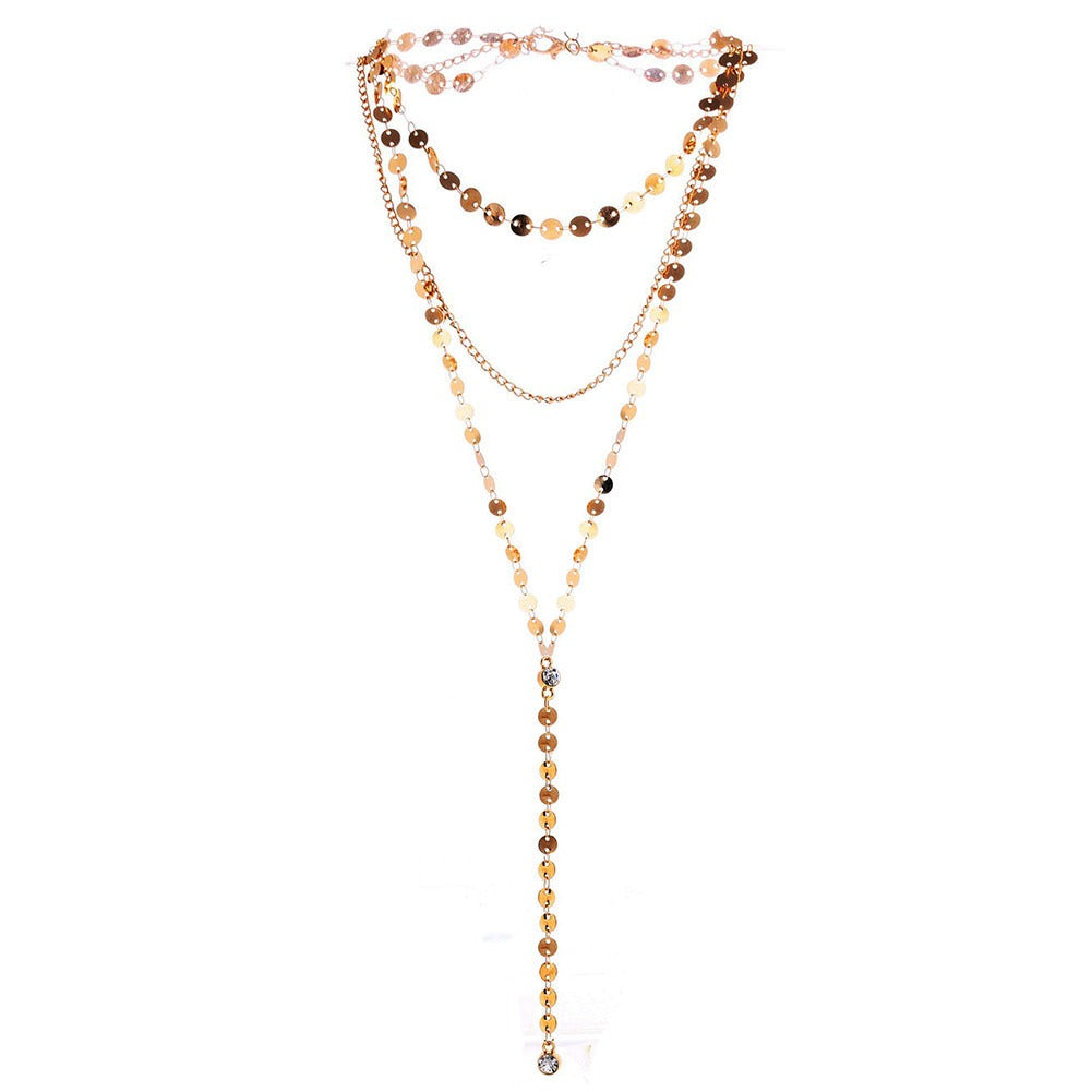 The shimmering sequins and elegant crystal pendant make this necklace a must-have for any outfit. The long chain allows for versatile styling options. allowing you to effortlessly dress up any look.