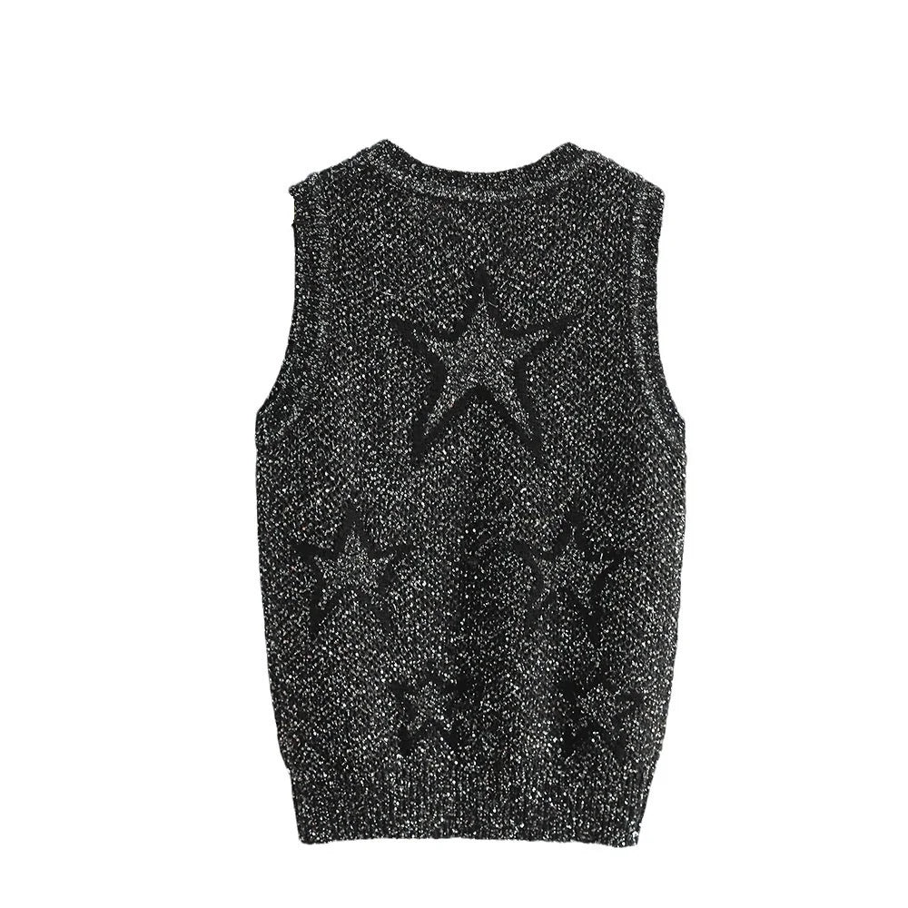 The vest features sparkling sequin stars that will add a touch of glamour to your outfit. Its round neck and sleeveless design make it comfortable to wear. while still making a statement. Perfect for those who want to stand out and make a stylish statement.