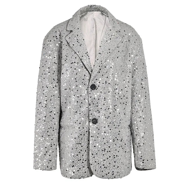 This blazer is designed with a single breasted style and features eye-catching sequins. making it the perfect statement piece. Its big size ensures a comfortable fit for all body types.