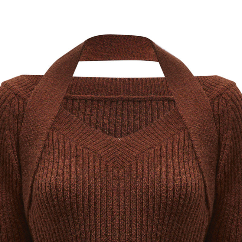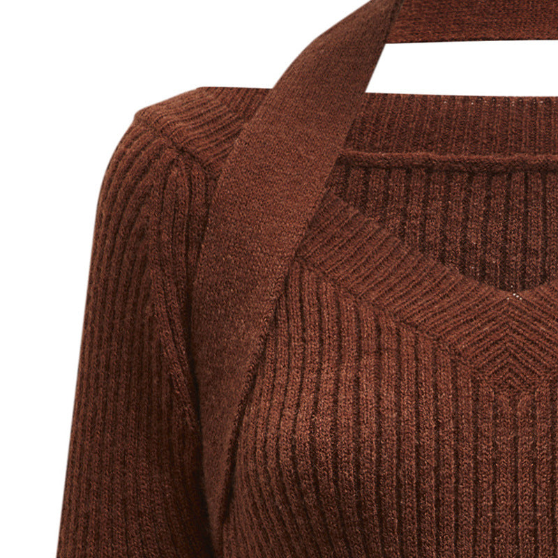 Its V-neck design and solid color add a touch of femininity. while the long sleeves keep you warm and stylish. Perfect for any occasion. this sweater is a must-have for any fashion-forward woman.