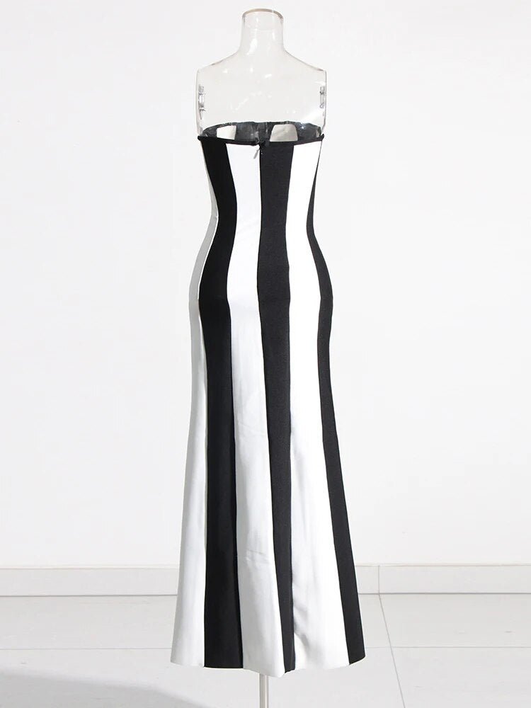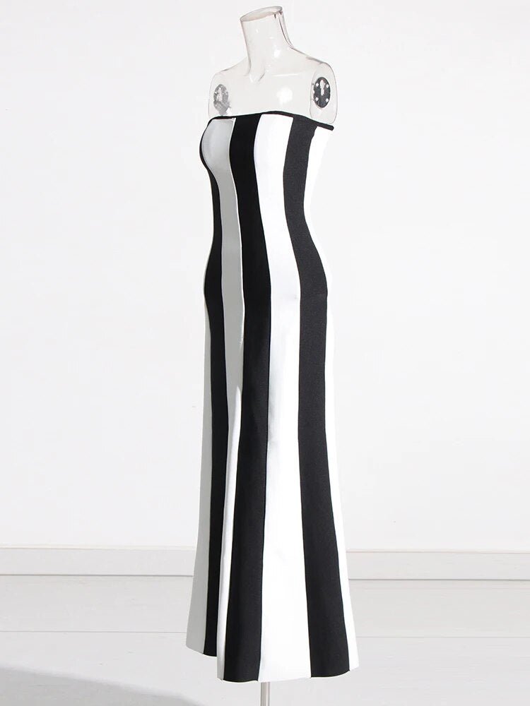 Colorblock Striped Dresses For Women Strapless Sleeveless High Waist Off Shoulder Slim Dress