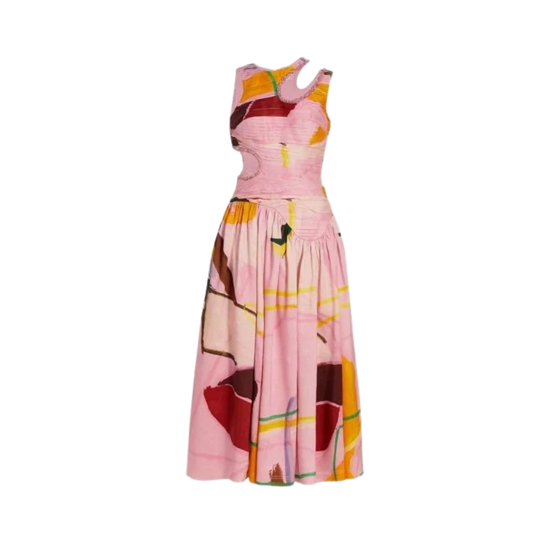 Its sleeveless design allows for maximum comfort. while the midi length adds a touch of elegance. The hollow details add a unique and stylish touch. making this dress a must-have for any occasion.