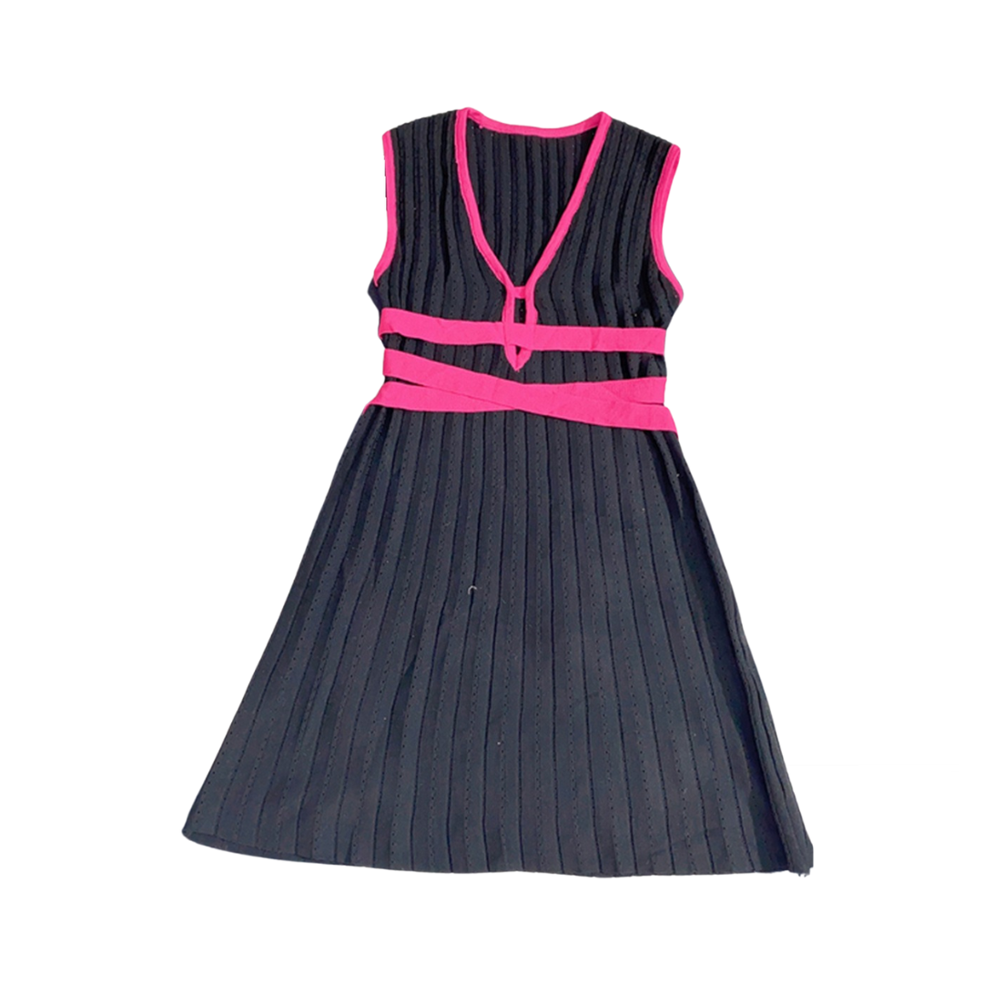 Made from a soft and comfortable knit fabric. this dress features a waist-cinching design and a flattering deep V neckline. The color blocking adds a modern touch. making this dress perfect for any occasion.