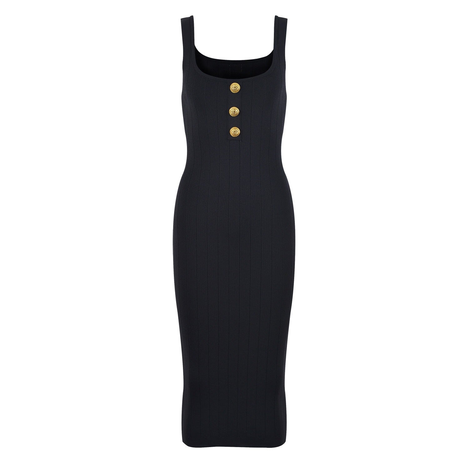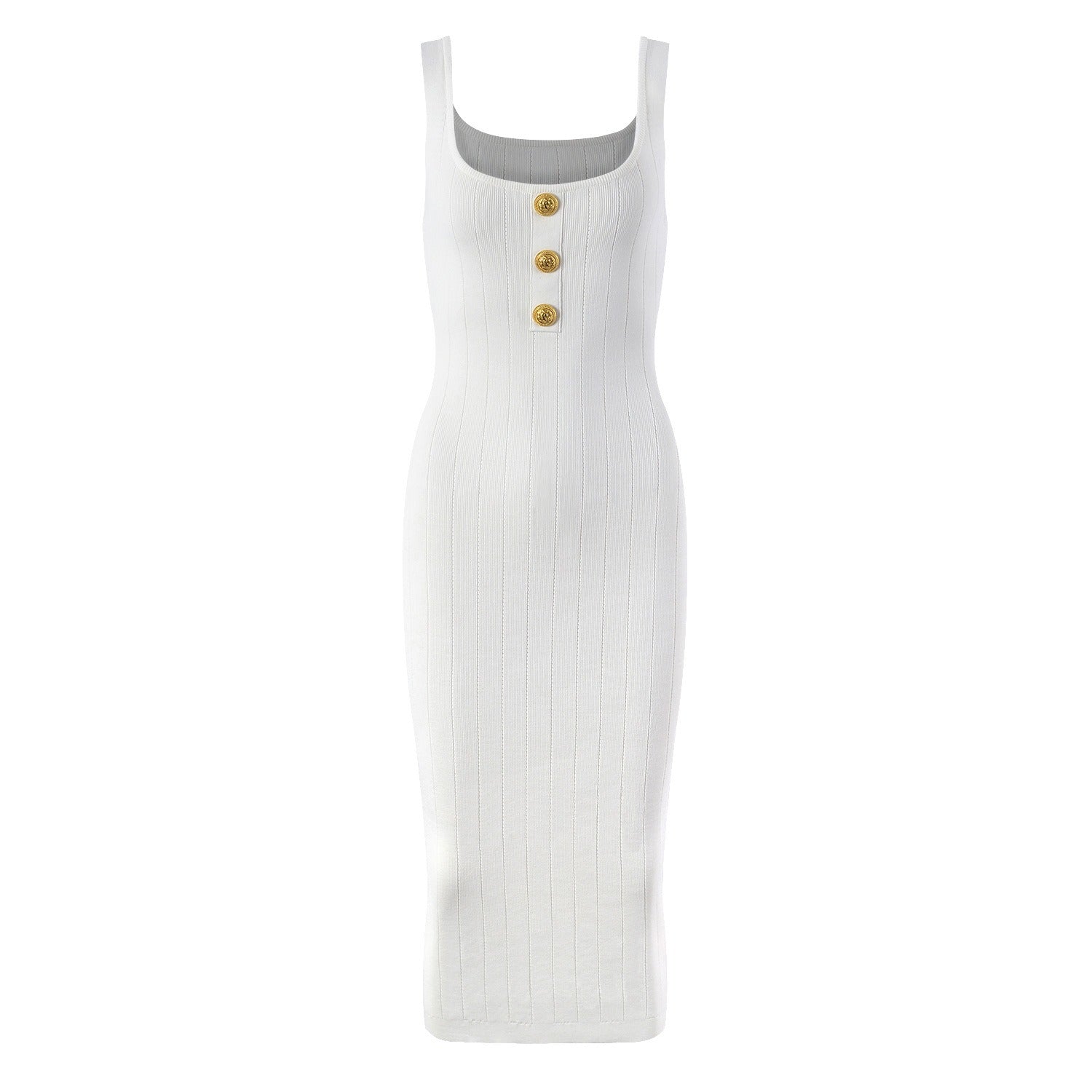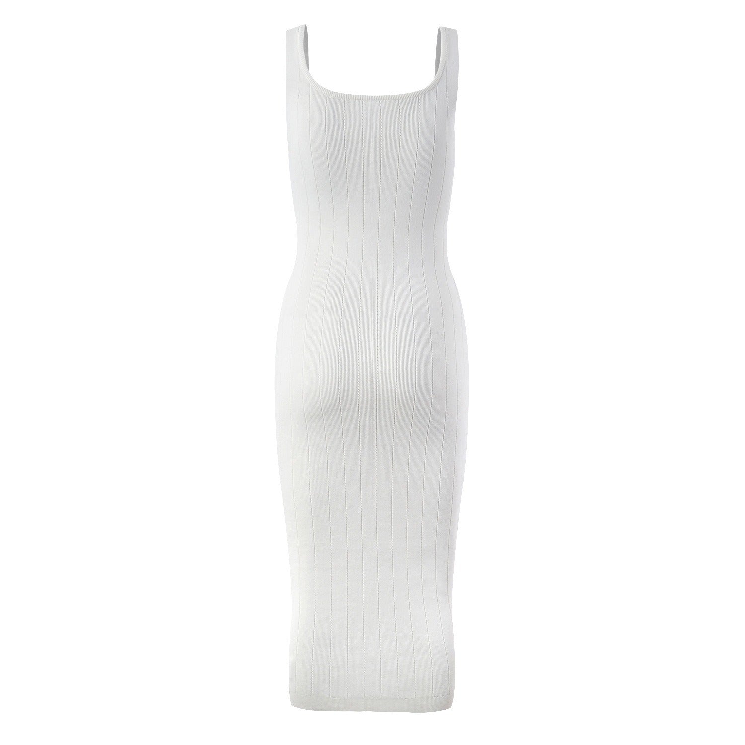 The U-neckline and slim straps create a sophisticated look. while the knit material provides comfortable stretch. Perfect for any occasion. this dress is a must-have for any fashion-forward wardrobe.