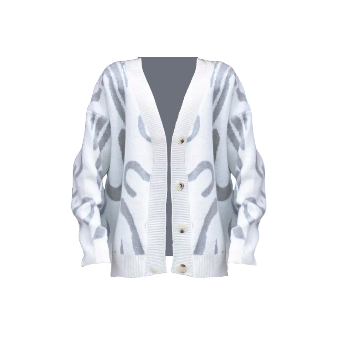 Stay cozy and stylish with our Soft Abstract Loose Knitted Cardigan. Made with soft and breathable fabric. this cardigan is perfect for staying warm and comfortable all day long. The loose fit adds a touch of modernity to your look. making it a versatile addition to your wardrobe.