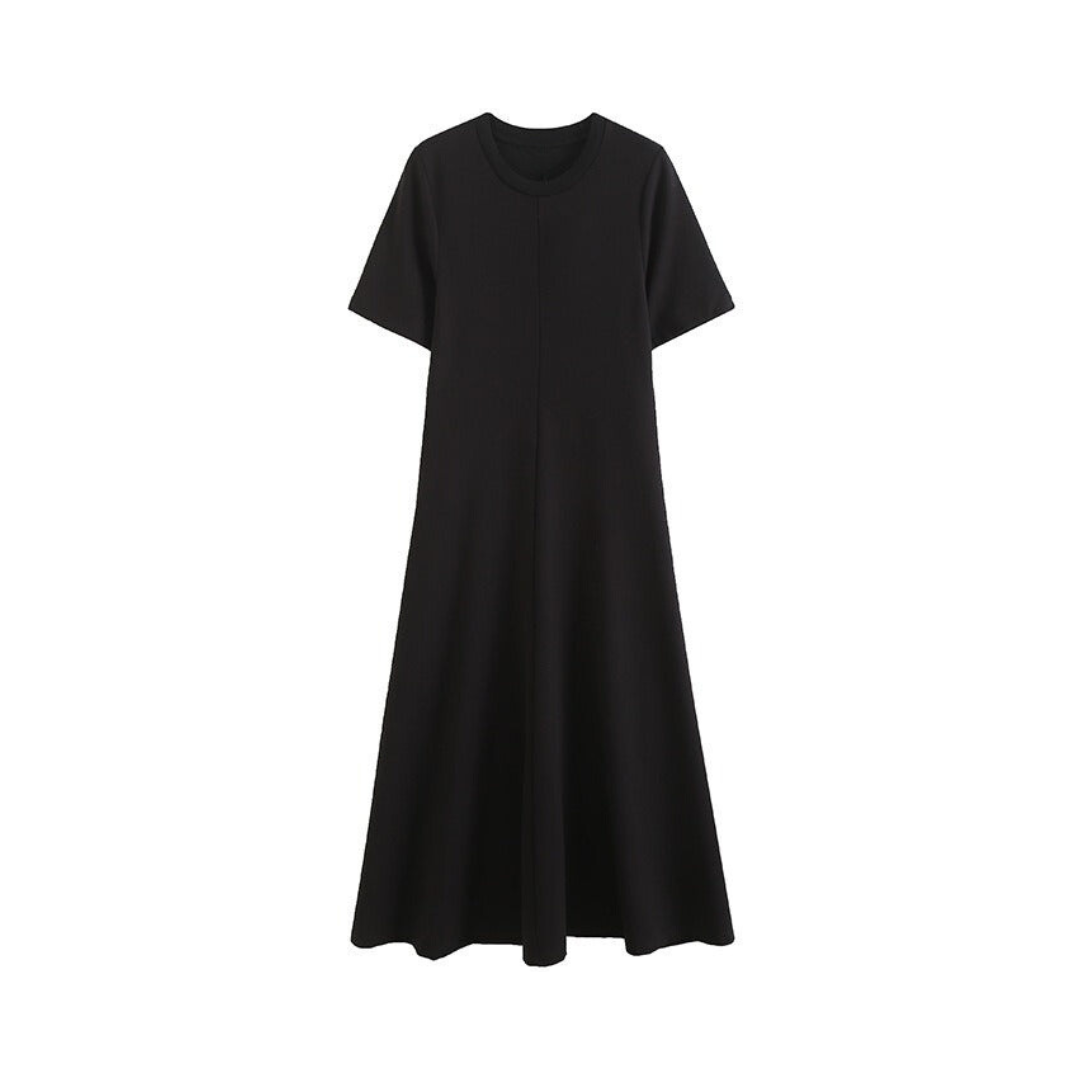 This Solid A-Line Round Neck Knitted Dress is a versatile addition to any wardrobe. Crafted from soft knit material. this dress features a classic A-line silhouette and a round neck design.