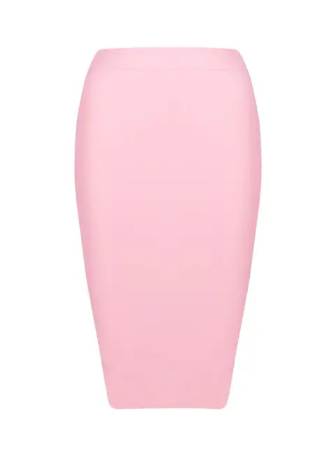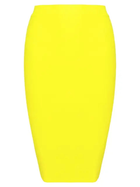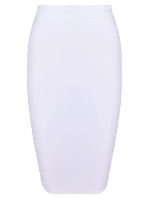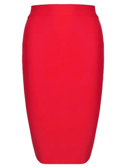 This high waist skirt is expertly designed with a solid bandage construction for a flattering and comfortable fit. Its stretchy fabric allows for easy movement and its bold design will elevate any outfit.