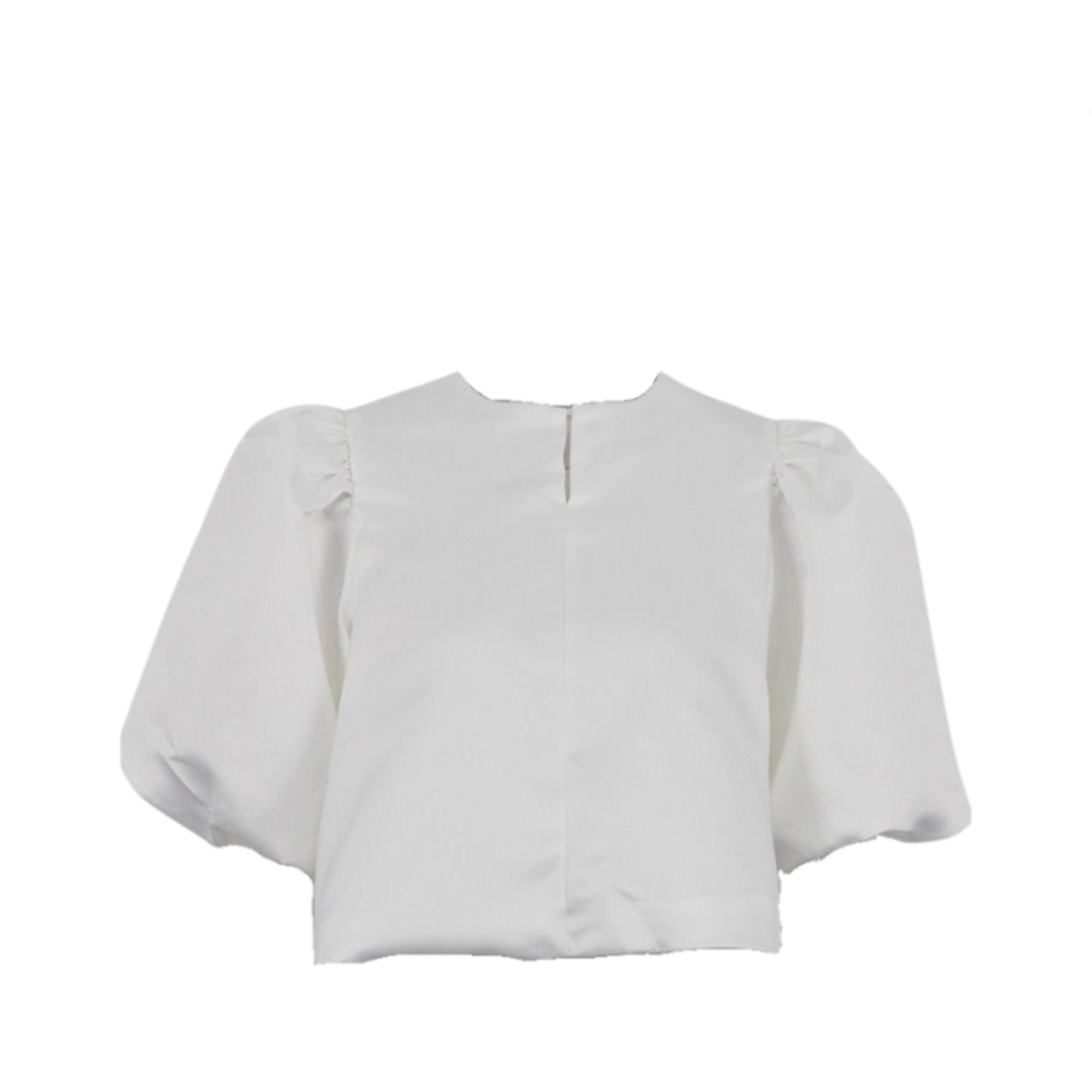 Made from satin fabric. this blouse features unique bubble sleeves for a bold and modern look. Its solid color makes it versatile and perfect for any occasion.