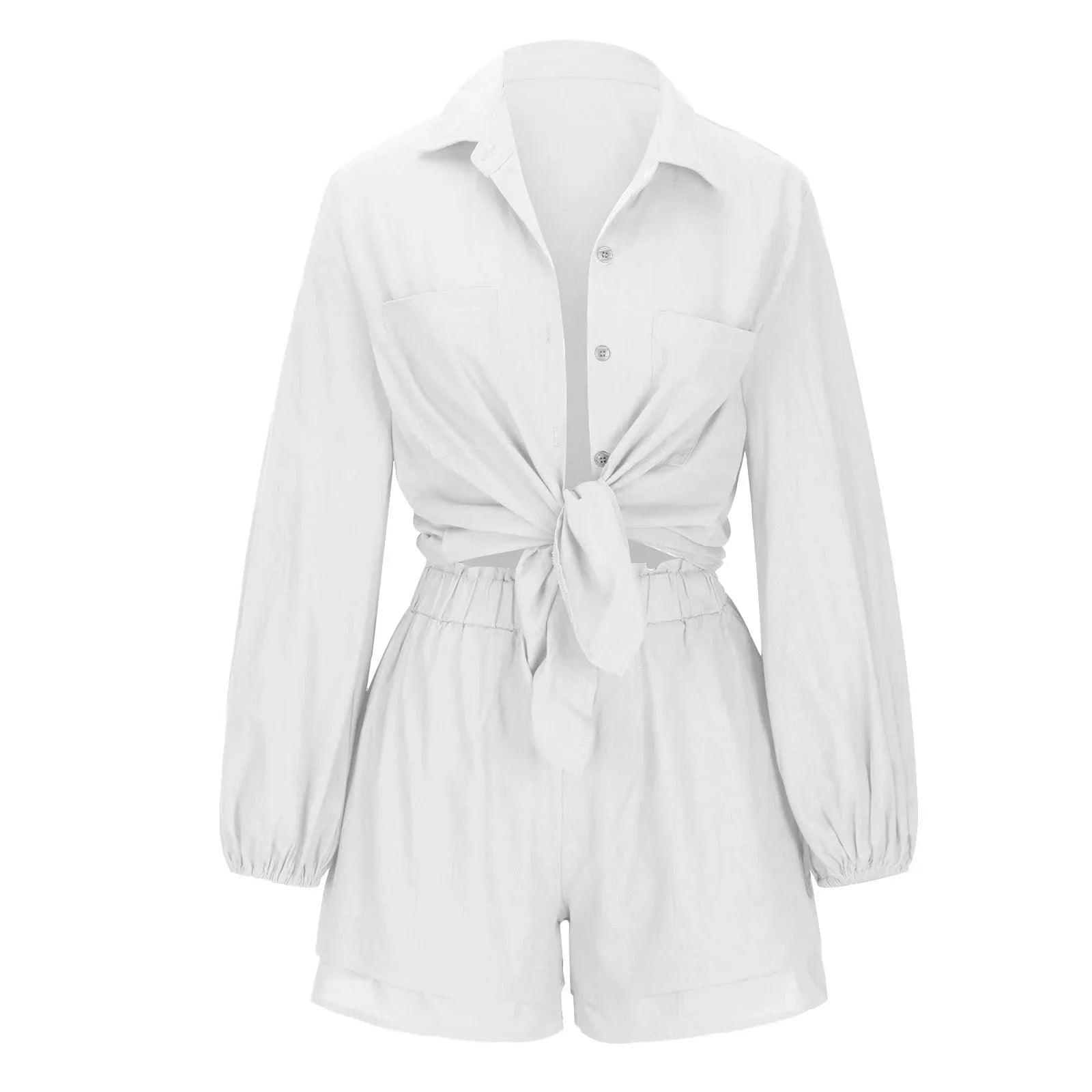 This stylish set features a lace-up top and matching shorts. perfect for any casual occasion. The solid design adds a touch of sophistication. while the lace-up detail adds a trendy twist.