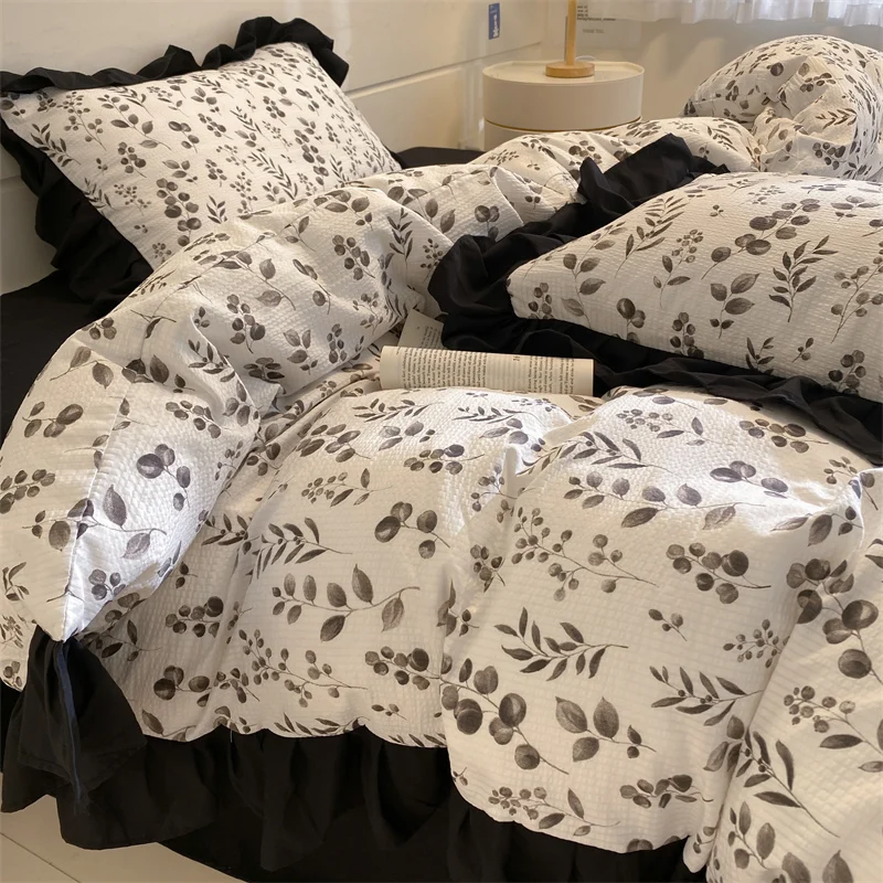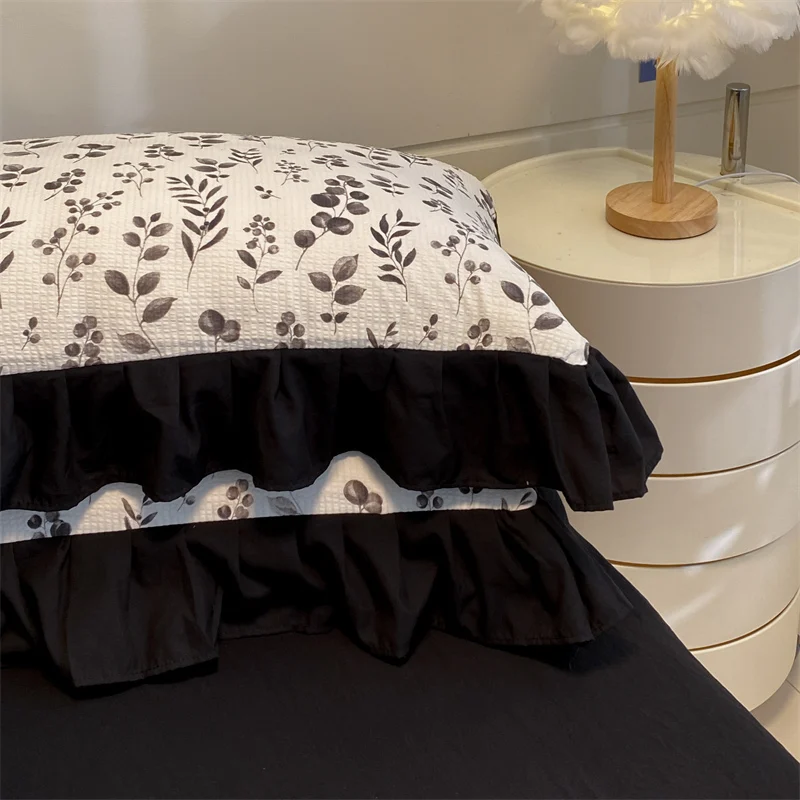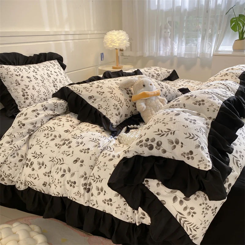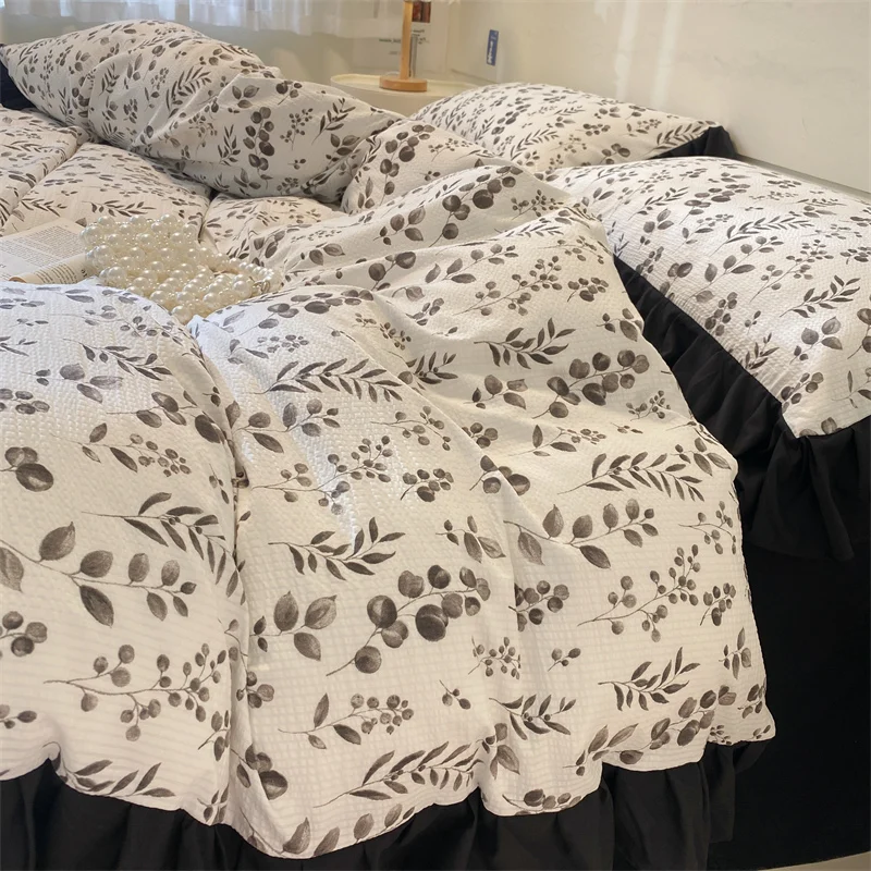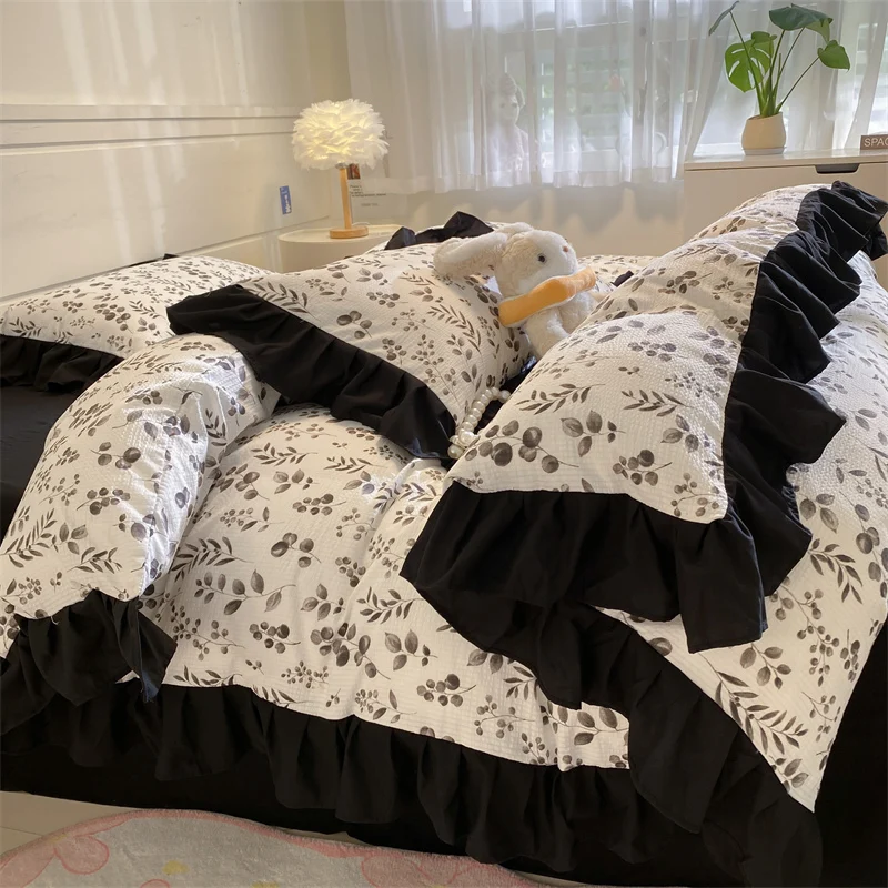 Solid Colour INS French Style Bedding Set For adults kids Brown pink Flat Sheet With Pillowcases Colorful King Queen Full size
