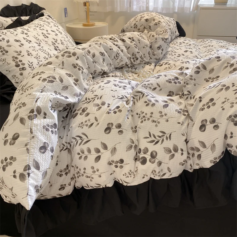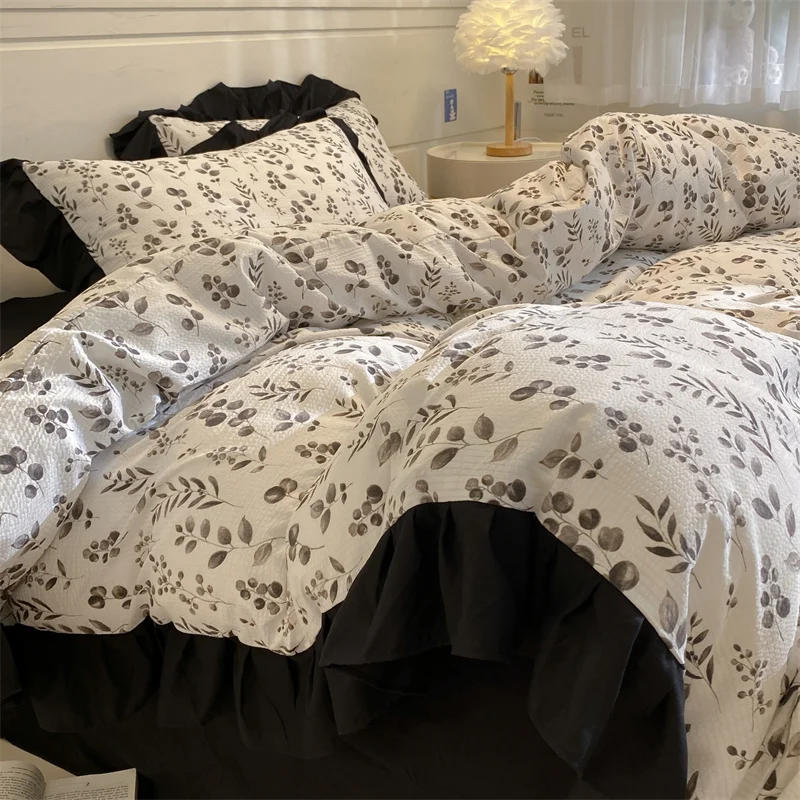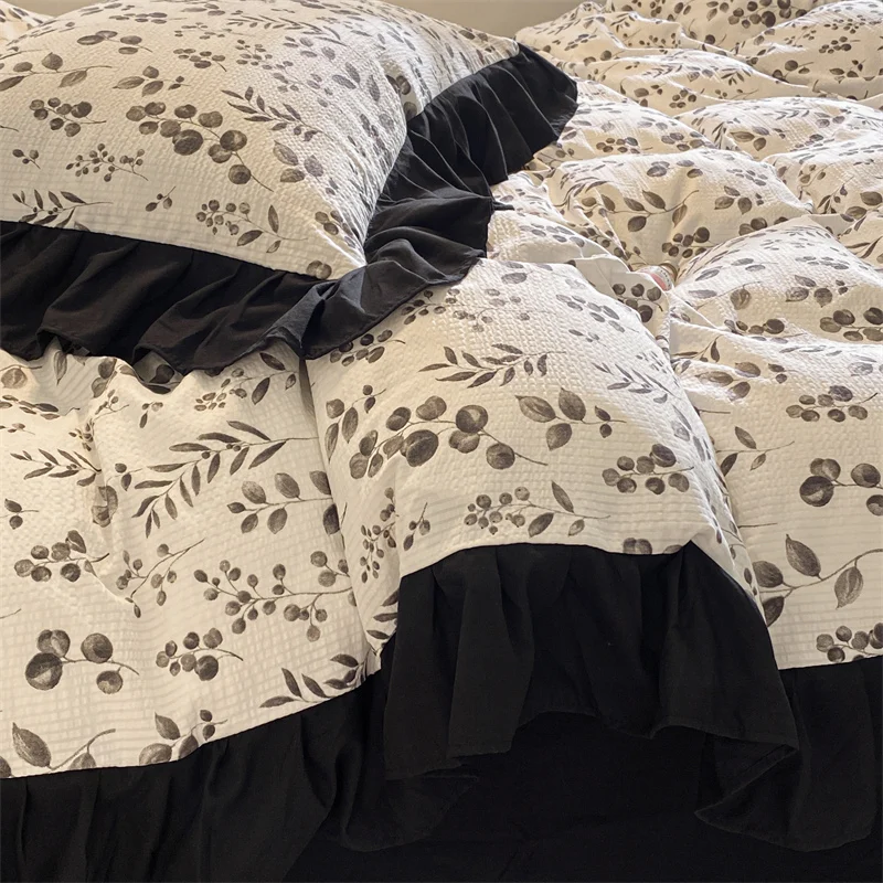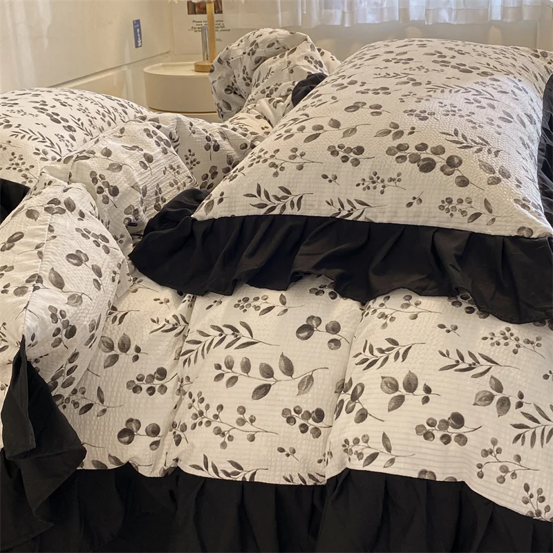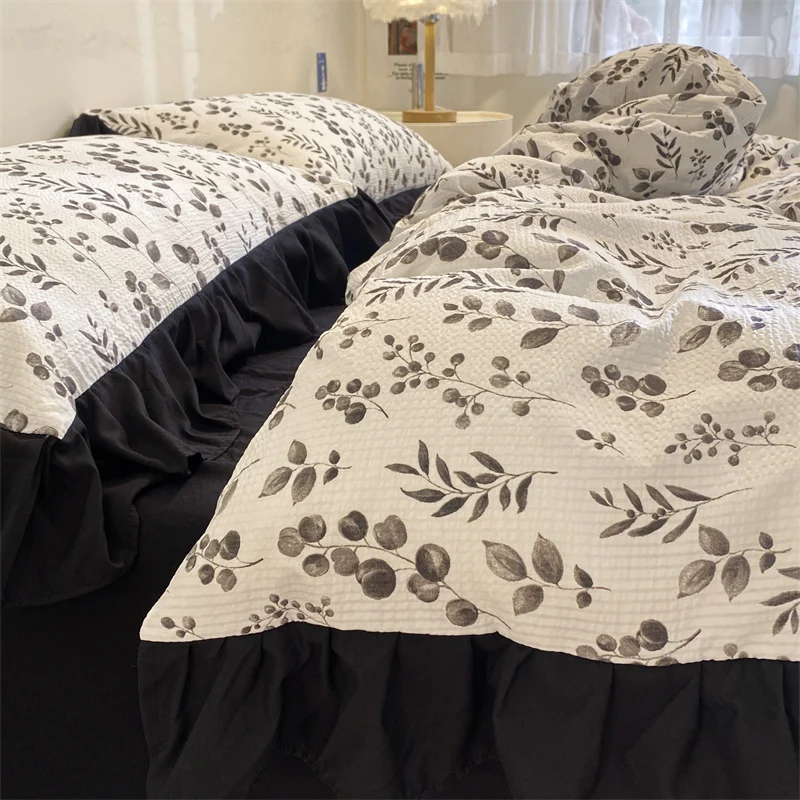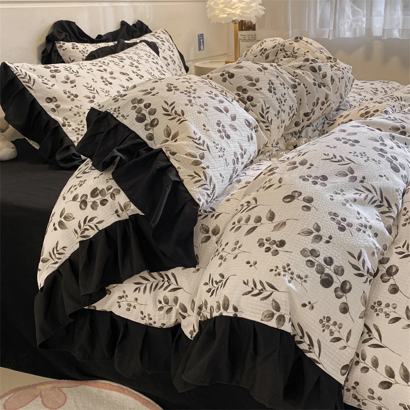 Solid Colour INS French Style Bedding Set For adults kids Brown pink Flat Sheet With Pillowcases Colorful King Queen Full size