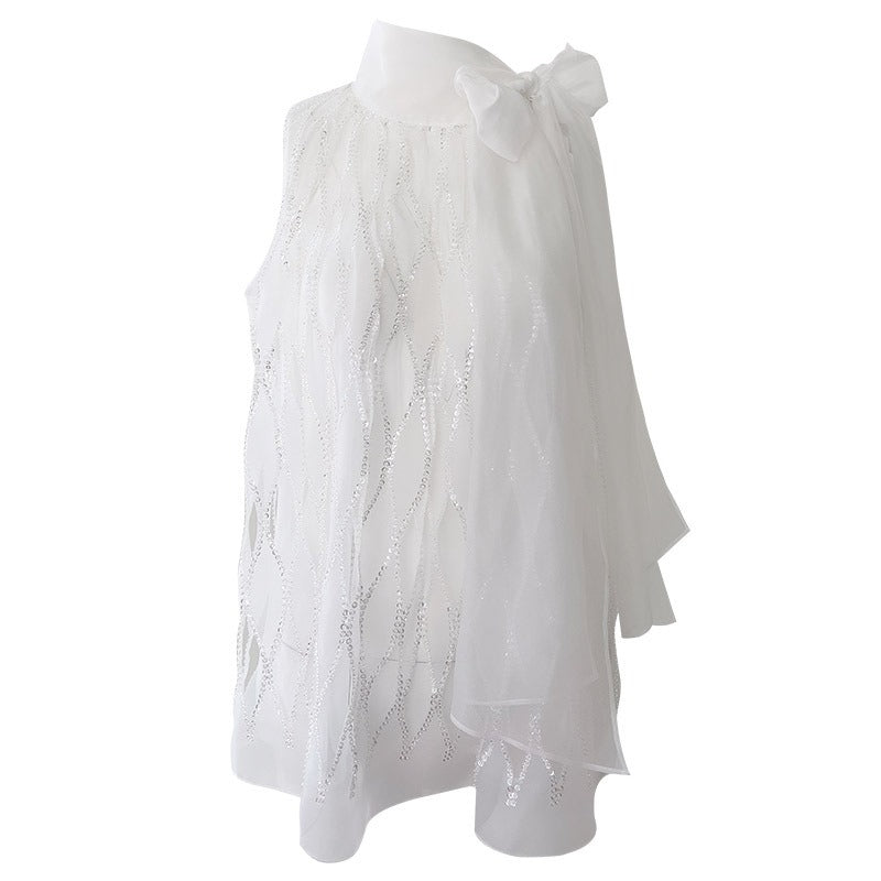 The intricate diamond-shaped hollow sequin design paired with lightweight organza fabric creates a stunning and comfortable statement piece. Perfect for special occasions or adding some sparkle to your everyday look.