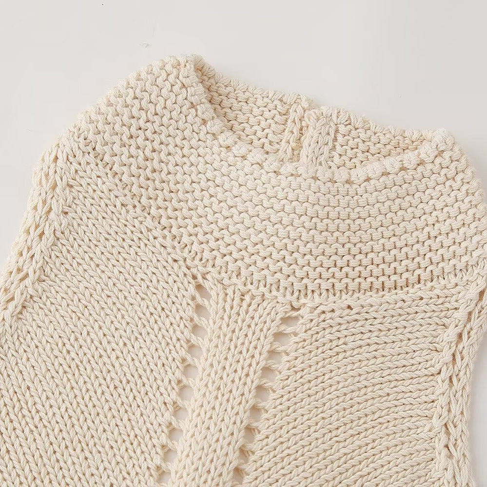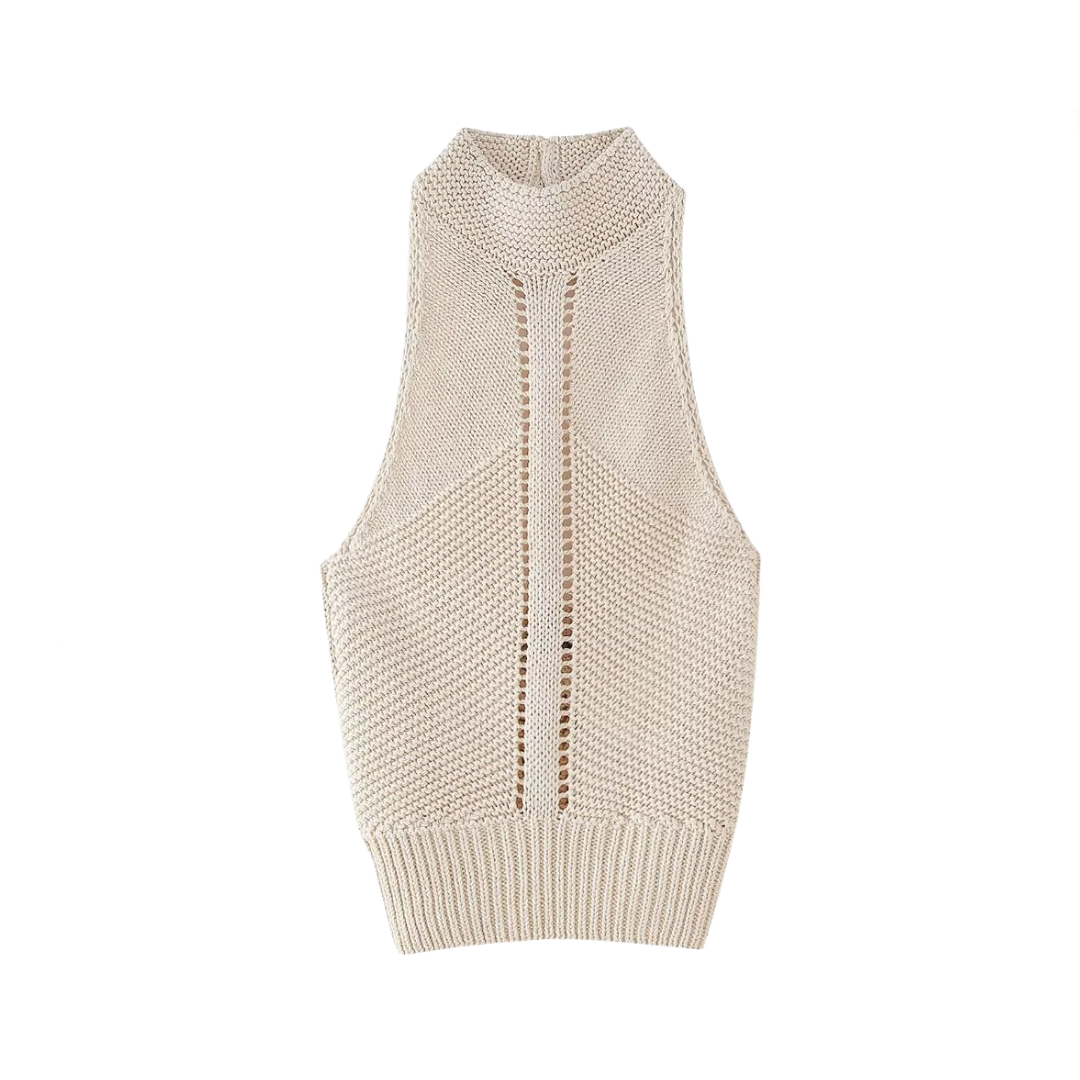 This Solid Hollow Knitted Hanging Neck Top is expertly crafted with a durable and breathable fabric. providing maximum comfort and style. The unique design features a hollow knitted pattern and a hanging neck neckline. perfect for adding a touch of elegance to any outfit.