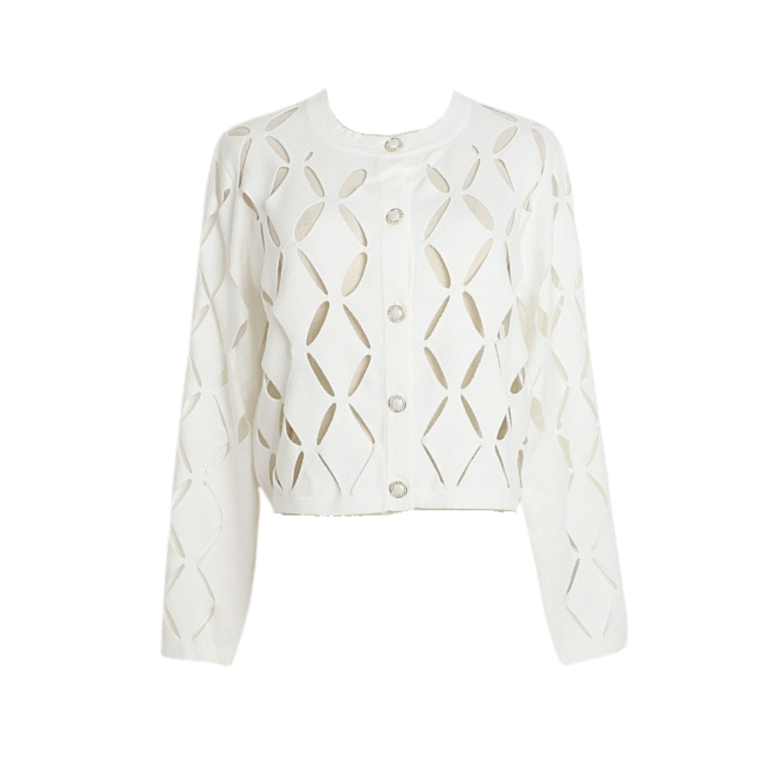 This cardigan provides a comfortable and stylish wardrobe staple. Its solid design and intricate hollow out knitting add a touch of elegance to any outfit.