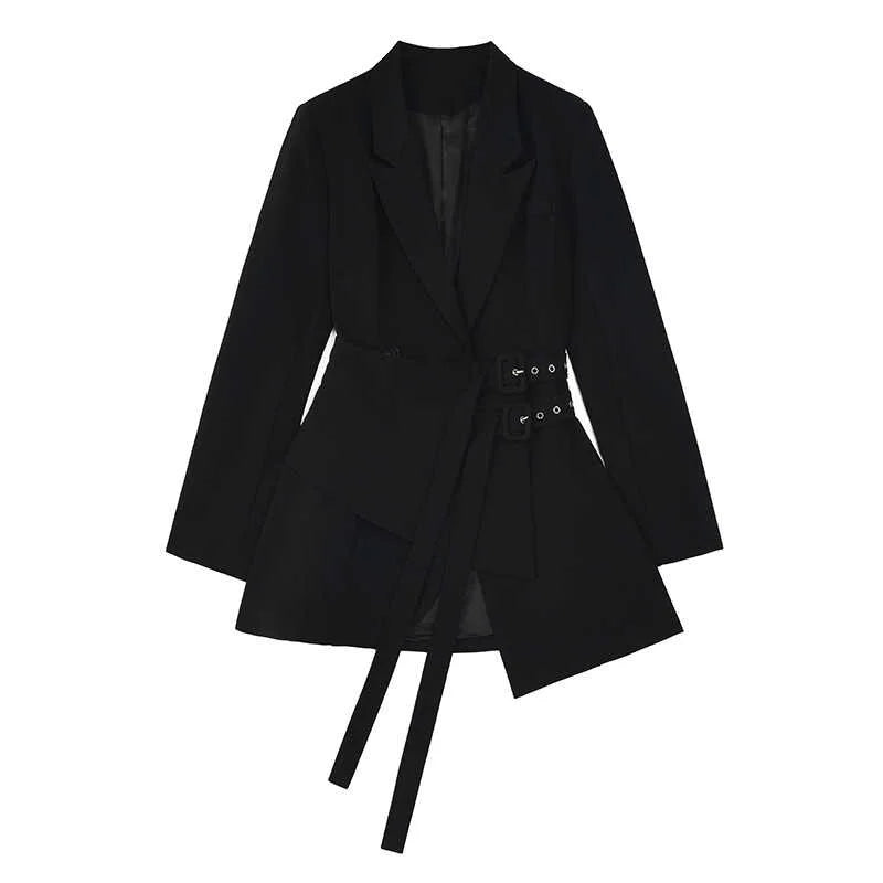 The unique bandage splicing adds a touch of modern flair to the classic solid design. Perfect for any occasion. this blazer is a versatile and sophisticated addition to any wardrobe.