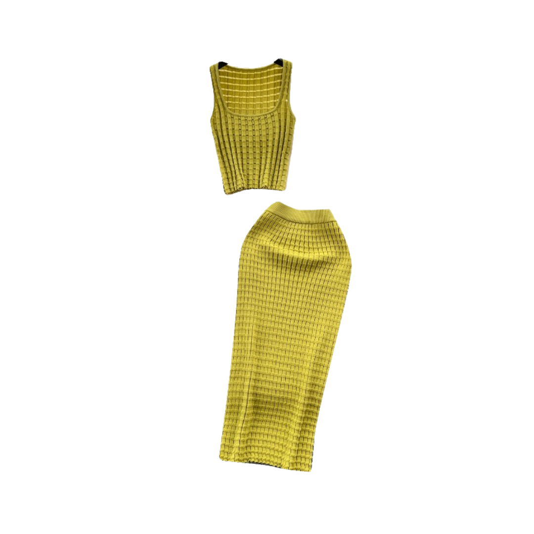 This Solid Knit Tank Top and Knit Skirt set offers a stylish and versatile look. The top and skirt are made of knit fabric. providing a comfortable and flattering fit.