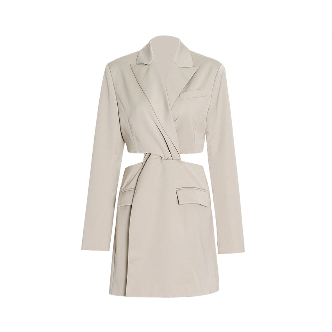 Perfect for any occasion. this dress features a flattering high waist and intricate hollow out design for a touch of elegance. With its solid long sleeves. you'll stay stylish and comfortable.