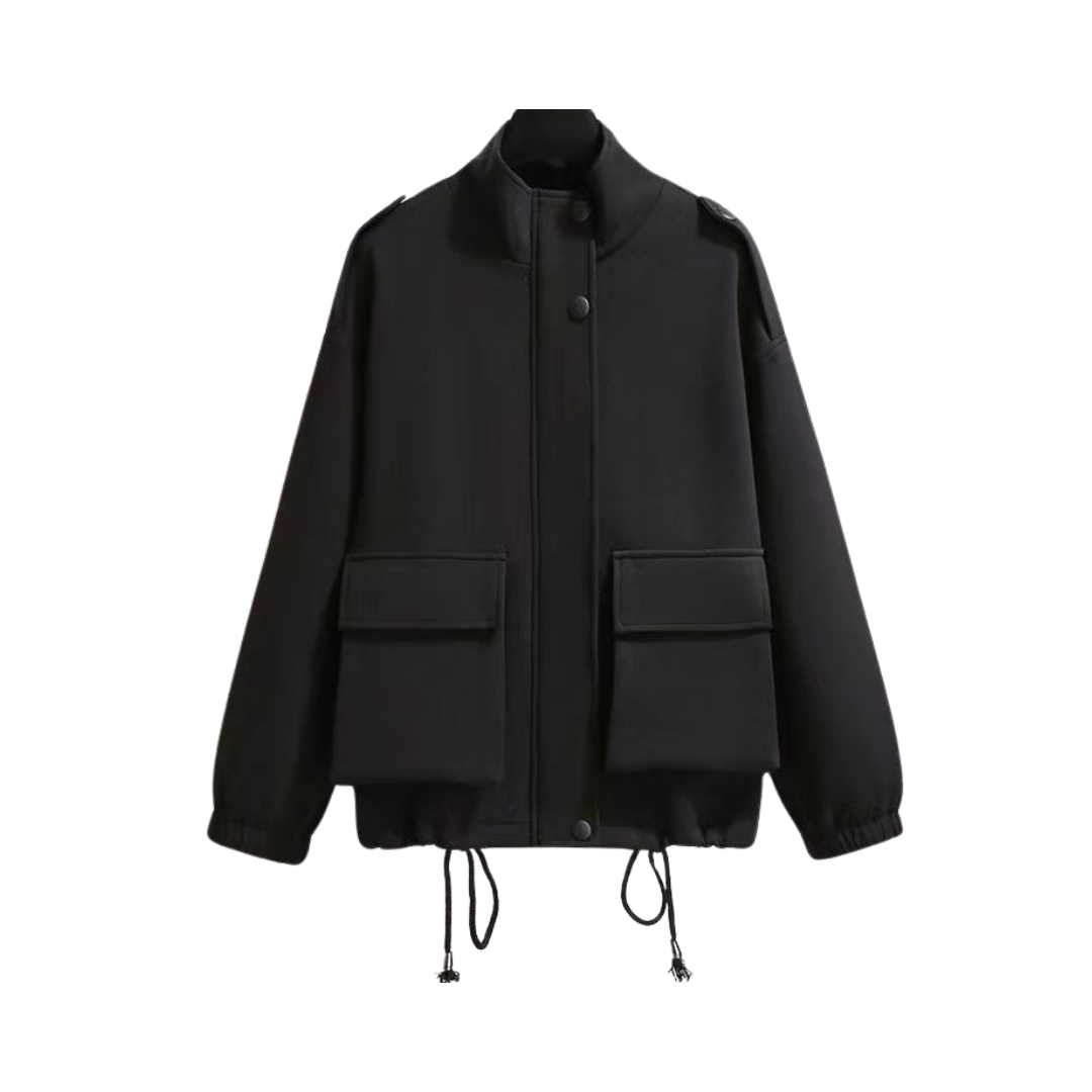 With a loose fit and adjustable drawstring. this jacket offers both comfort and versatility. The zip up design adds convenience. making it a must-have for any wardrobe.