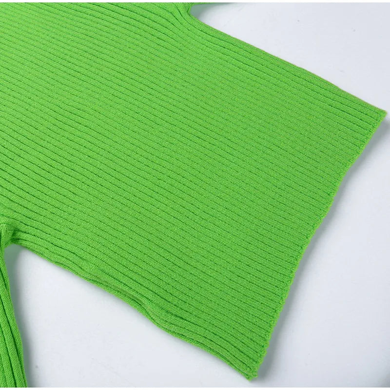 This two-piece set features a slim-fitting turtleneck crop top and a high-waisted pleated mini skirt. both in a stylish color. Perfect for a day out on the town. this set keeps you looking chic and put-together.
