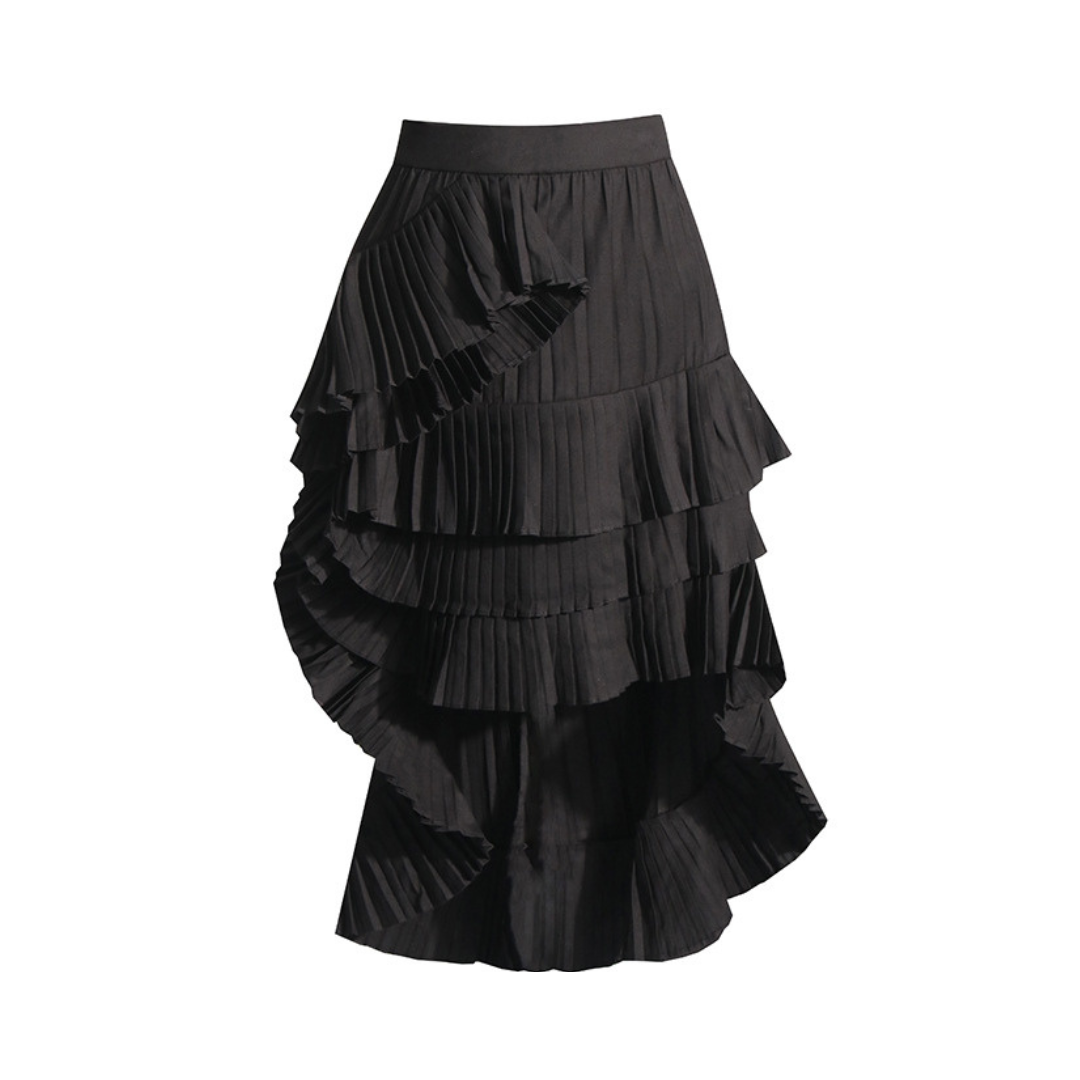 Made with a high waist design and pleated ruffled edges. this skirt is both stylish and versatile. Its solid color makes it easy to pair with any top. making it a must-have for any fashionista.
