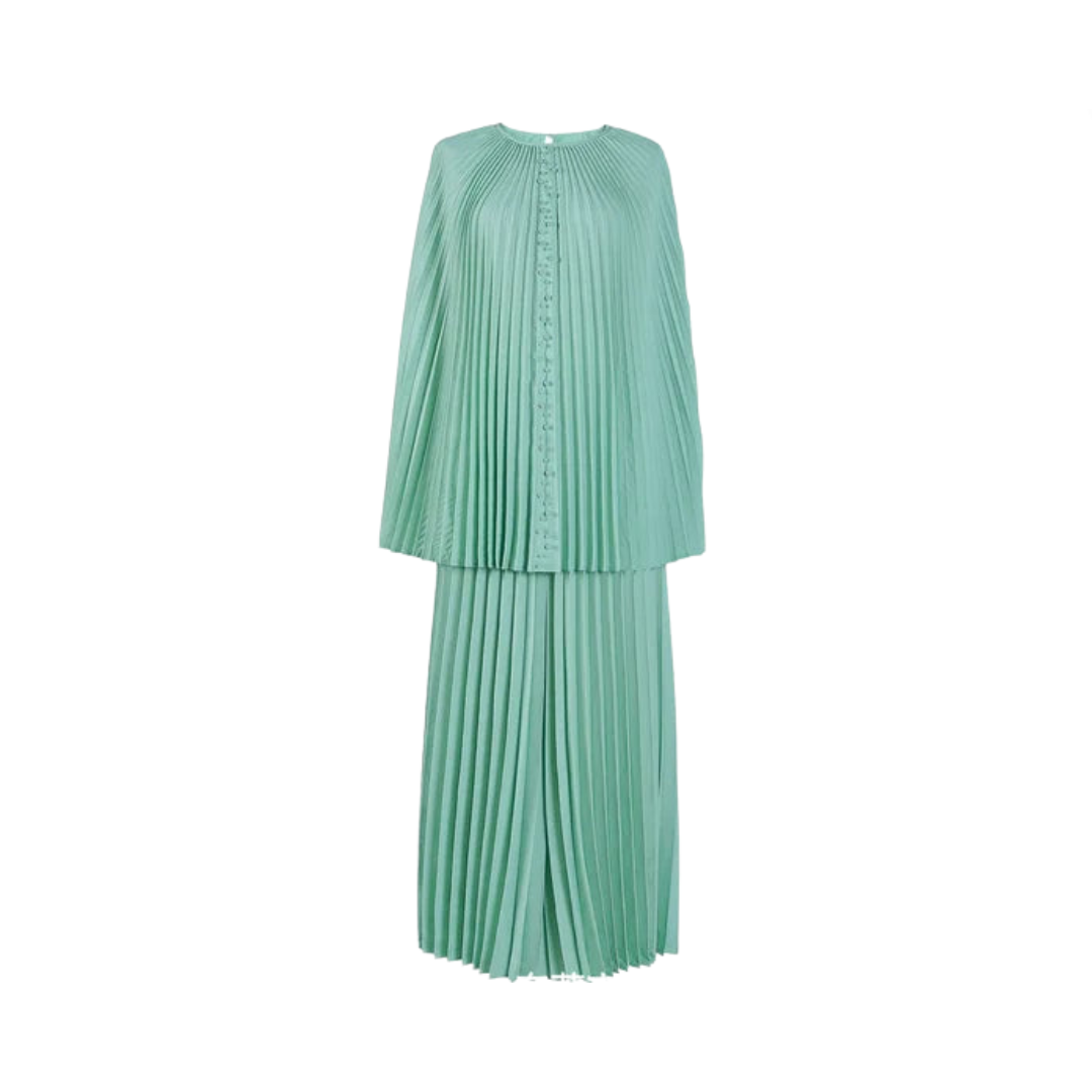 This solid pleated sleeveless top and wide leg trousers set is a versatile addition to any wardrobe. The top features a sophisticated and modern pleated design. while the wide leg trousers offer comfort and style.