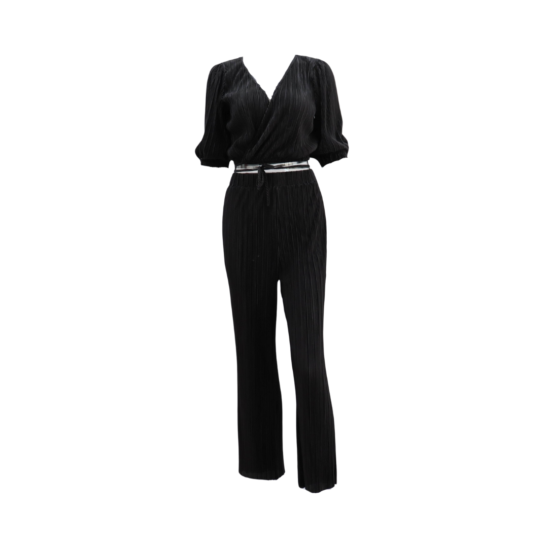 The pleated detail adds subtle texture and the v-neck design flatters your neckline. The straight pants provide a comfortable and versatile fit.