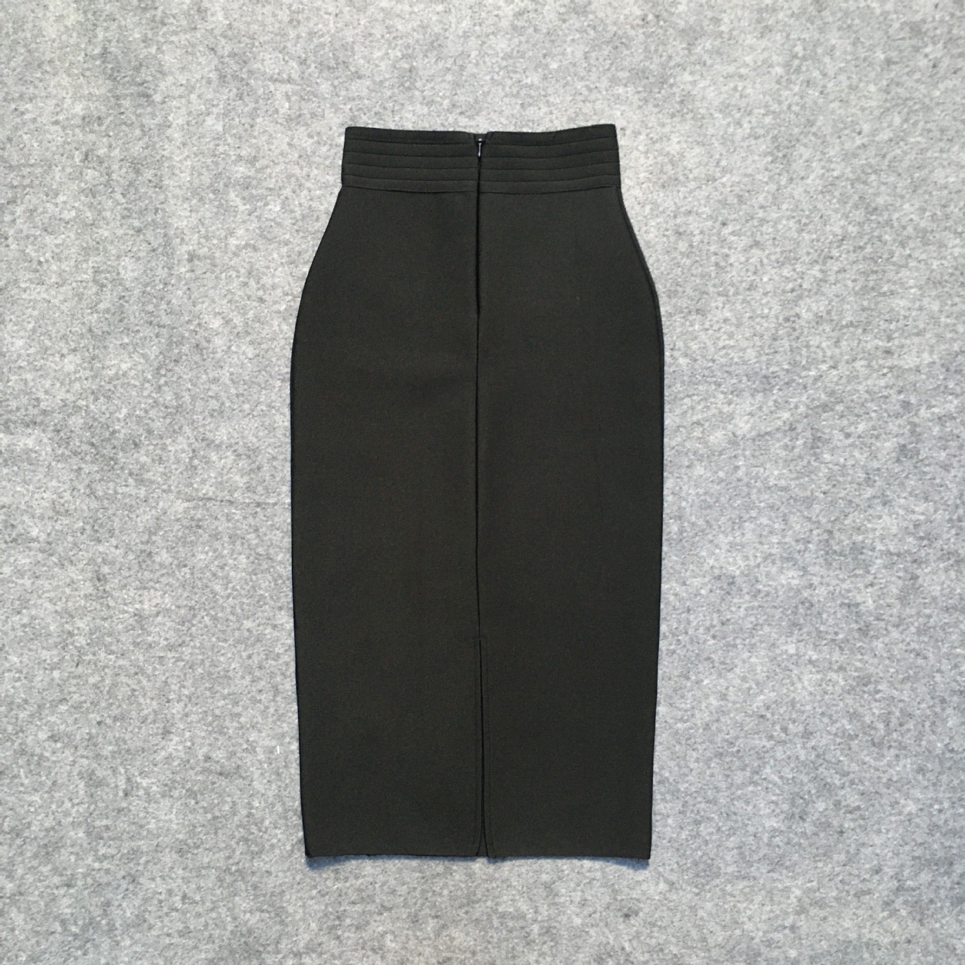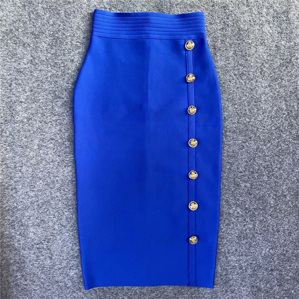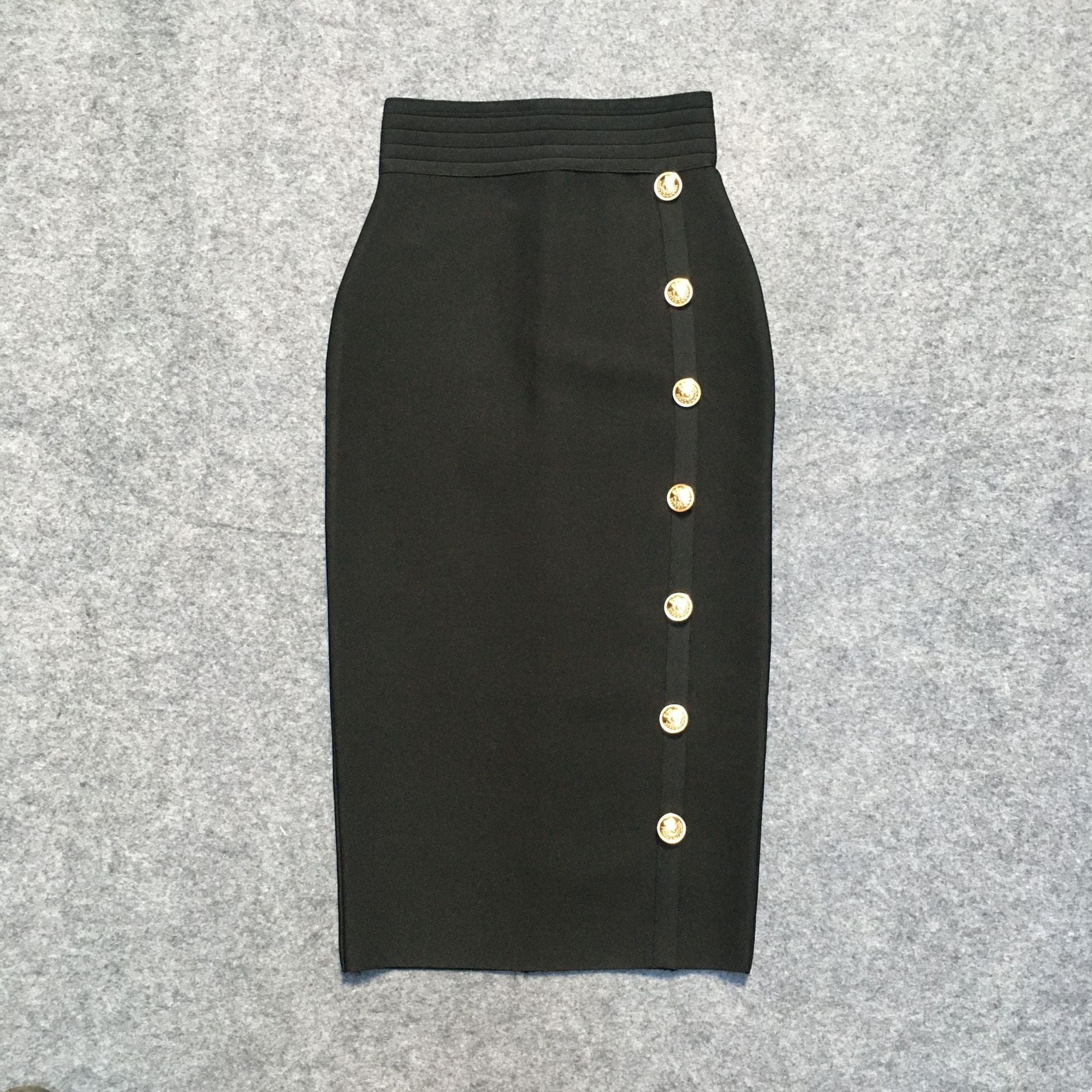 Featuring a single row of buttons. this skirt offers a secure and comfortable fit. The solid design adds a touch of sophistication while the bandage material provides a flattering shape.