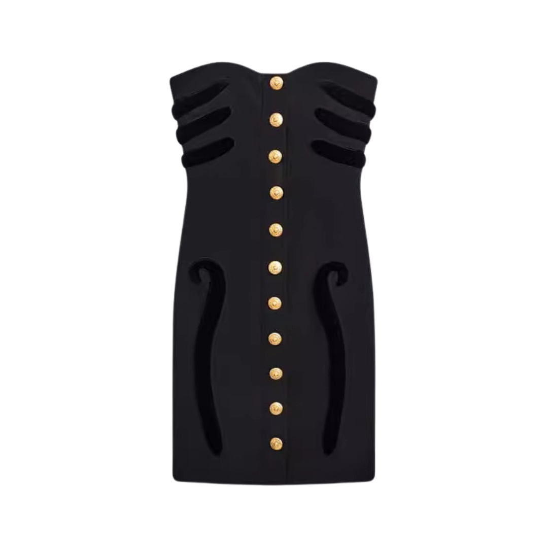 The dress features a figure-flattering slim fit design that accentuates your curves. while the strapless neckline adds a touch of elegance. Perfect for any occasion. this dress will surely turn heads wherever you go.