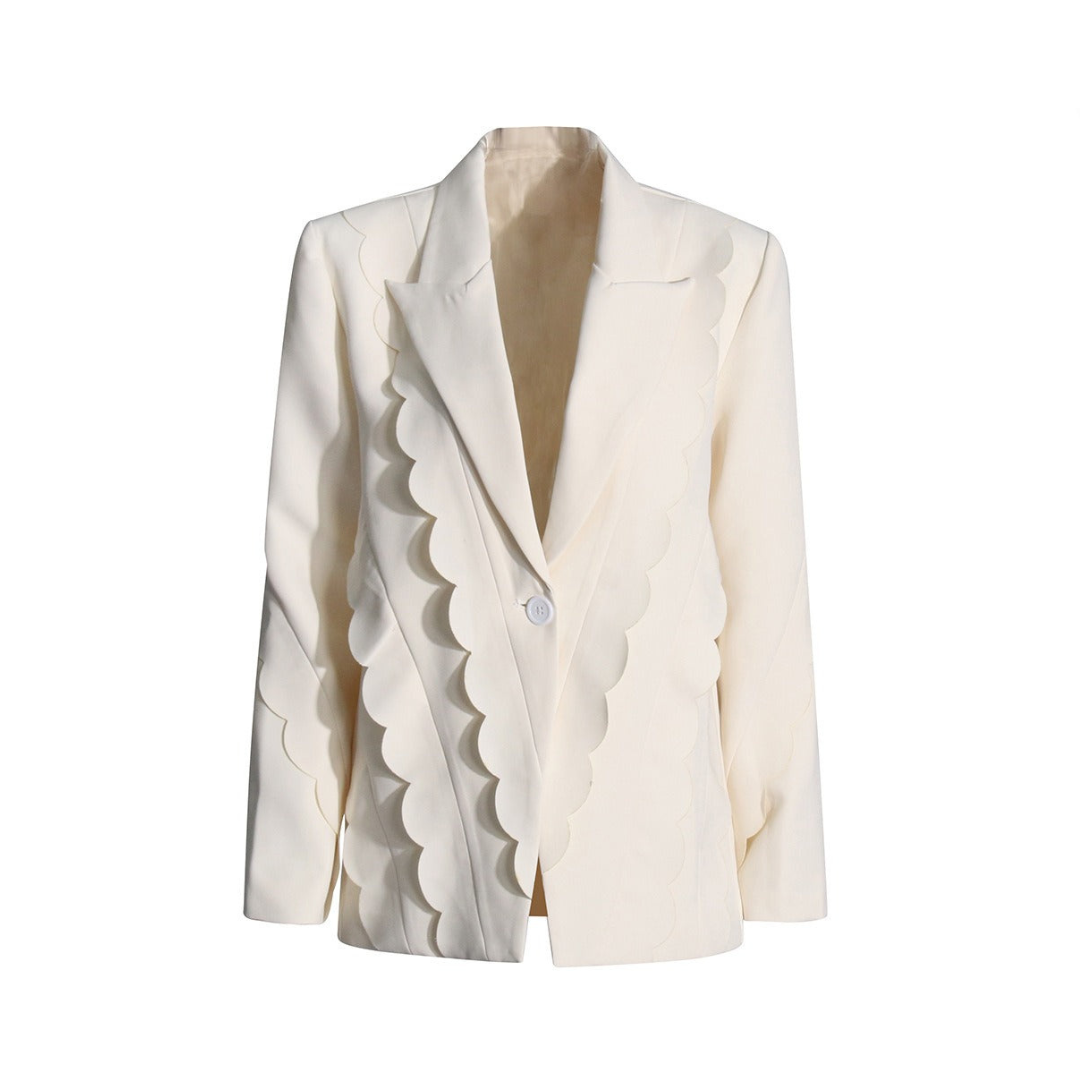 Expertly crafted for a refined silhouette. this Solid Spliced Round Disc Suit Jacket elevates any look. The rounded disc design adds a modern touch while the solid color provides versatility.