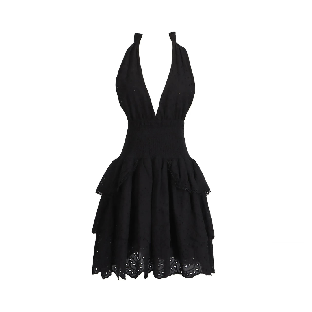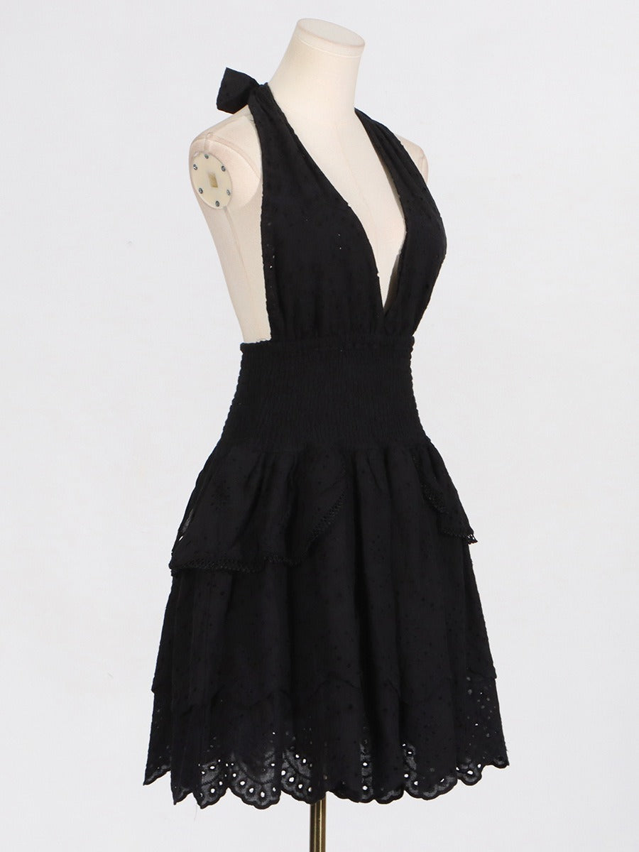Expertly crafted from high-quality materials. this Solid V-Neck Color Splicing Halter Neck A-Line Dress combines fashion and comfort in one stunning piece. With its flattering halter neck and A-line silhouette. this dress is perfect for any occasion.