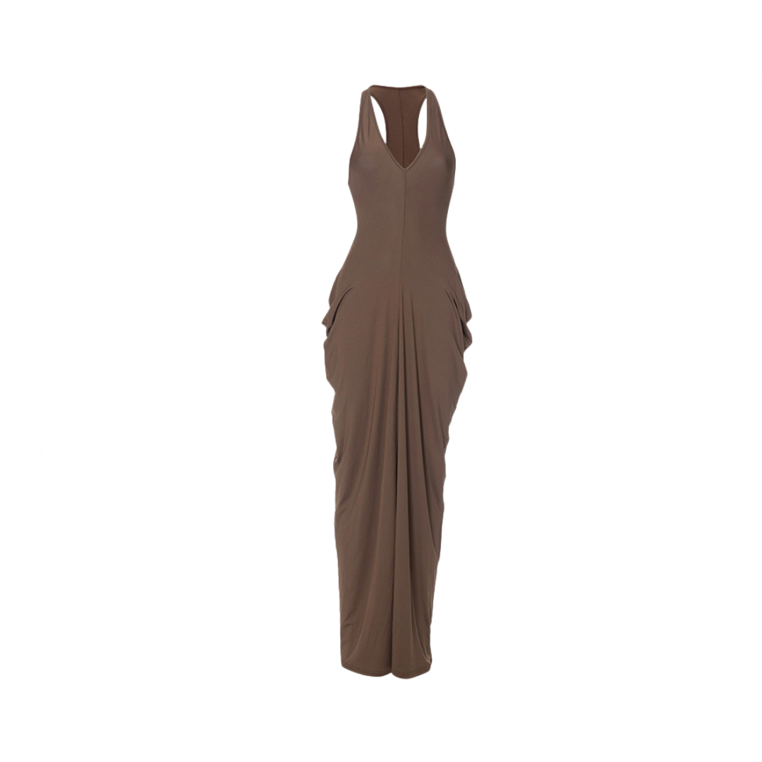 Expertly crafted with a solid v-neck and sleeveless design. our maxi dress exudes sophistication and versatility. The sleek and simple cut flatters all body types. while the soft. breathable fabric ensures all-day comfort.