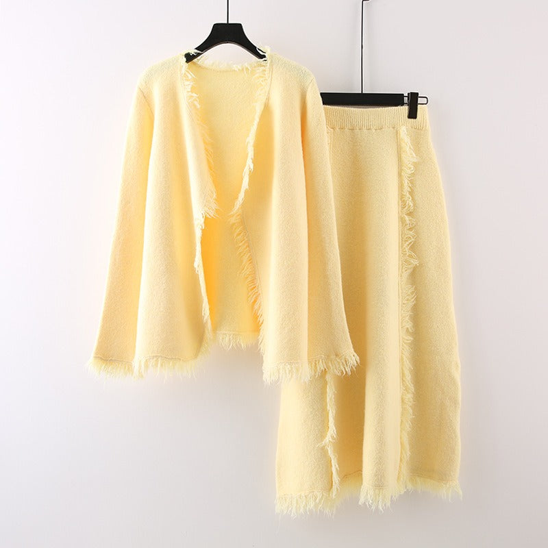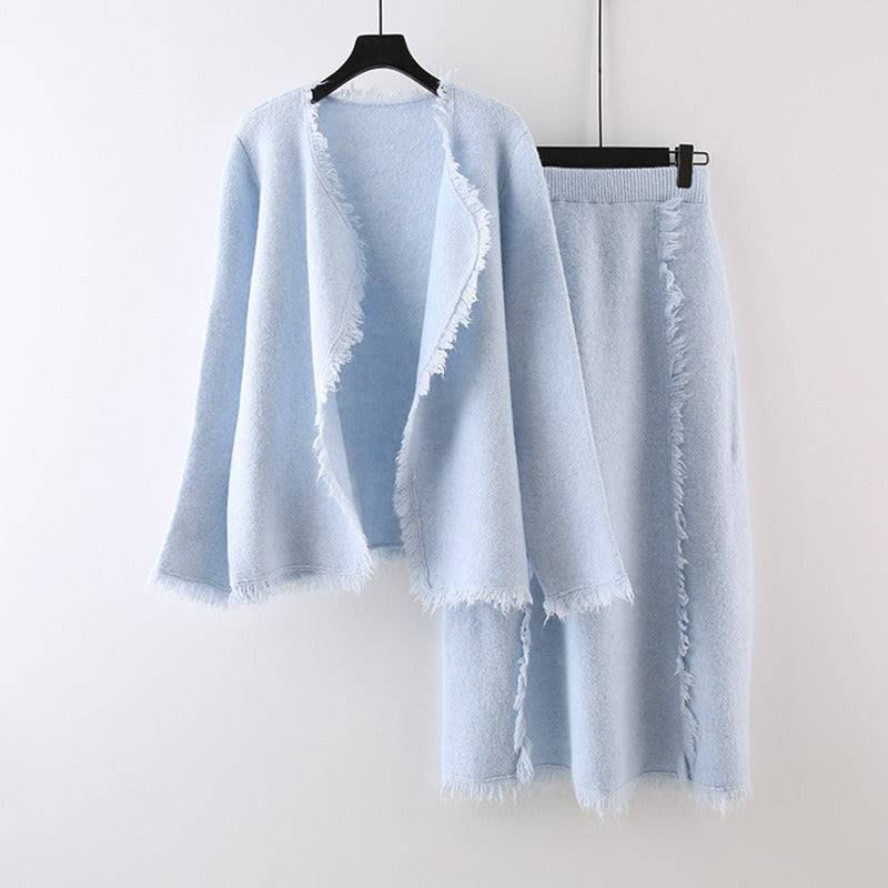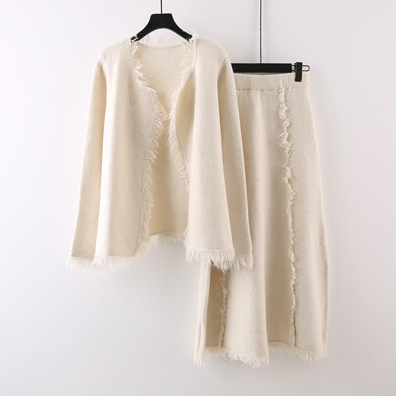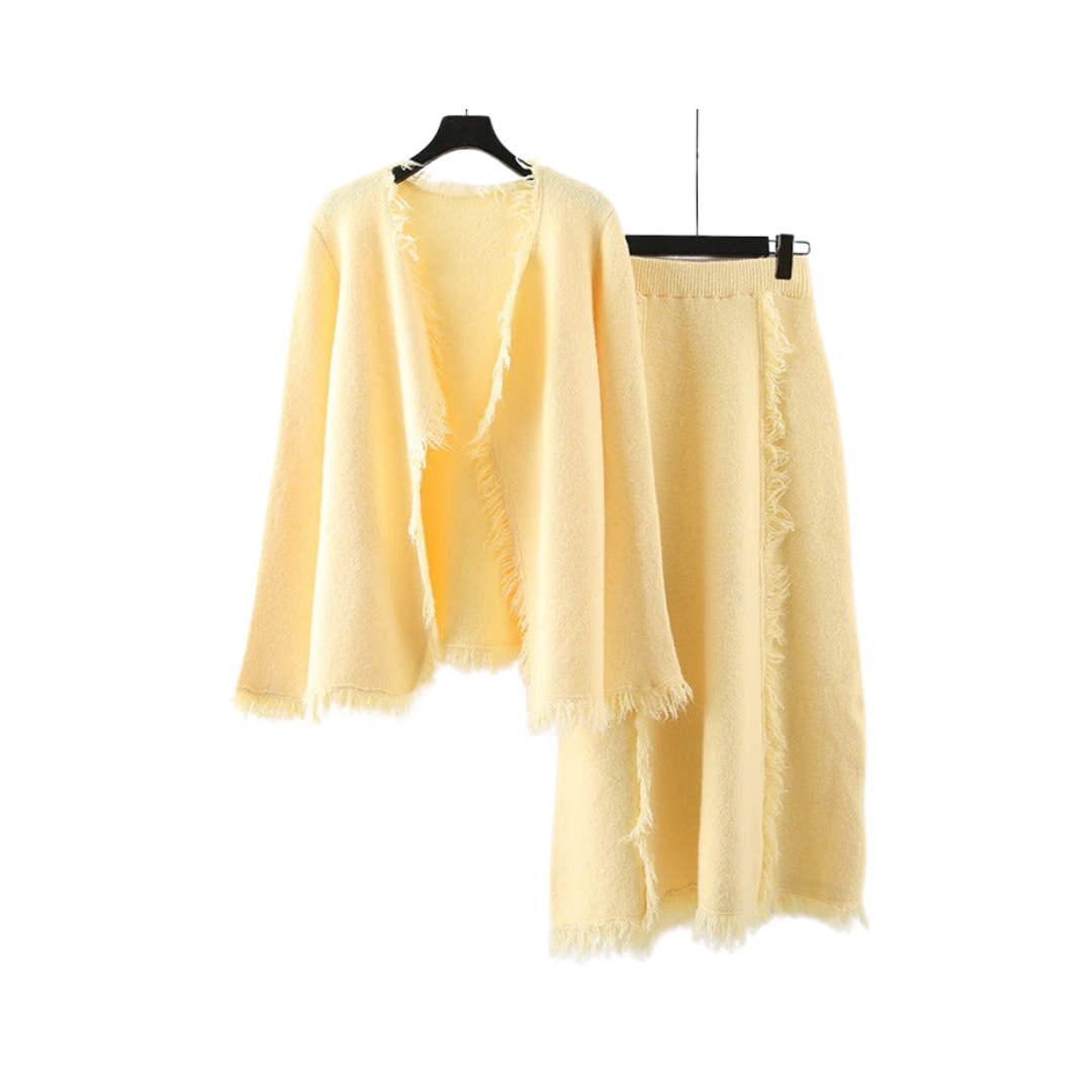 Made from woven fabric. this set offers a loose fit for all-day comfort while still maintaining a polished look. The solid shirt pairs beautifully with the intricately woven skirt. making it a versatile and stylish choice for any occasion.